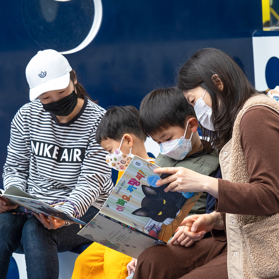 먼저 ‘MOKA 플레이 벽화 이야기’를 듣고, 이달의 그림책을 함께 읽어볼까요? 이달의 그림책은 데이비드 위즈너의 <이봐요, 까망씨!>에요. 그림책 속 우주인들의 탈출 스토리를 함께 읽고 나면, MOKA 플레이 바닥에 있는 수수께끼 도형을 이용한 암호 같은 나만의 메시지도 쉽게 만들어볼 수 있습니다.