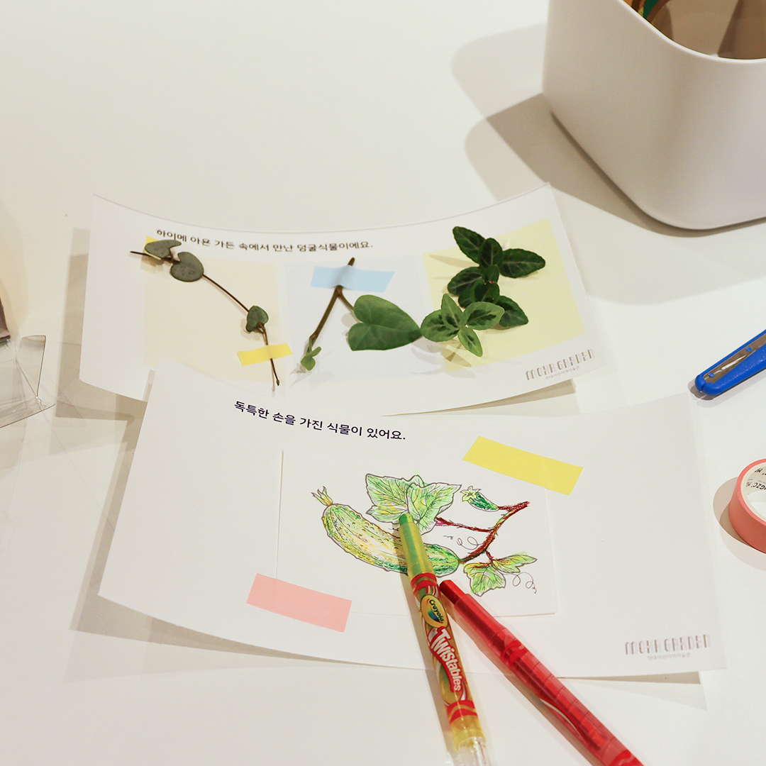 3주 동안 진행되는 ‘Little Botanists’는 식물에게 꼭 필요한 ‘햇빛’, ‘물’, ‘토양’을 이해할 수 있게 하는 전문 식물 프로그램인데요. 덩굴에 대해 배우고 덩굴을 위한 구조물을 만들기, 물을 많이 먹는 식물을 위한 화분 만들기, 흙을 직접 만져보고 식물을 위한 흙 고르기 등의 다양한 체험을 통해 자연을 느끼고 그린썸노트에 배운 것을 기록하며 가드닝을 경험할 수 있어요.