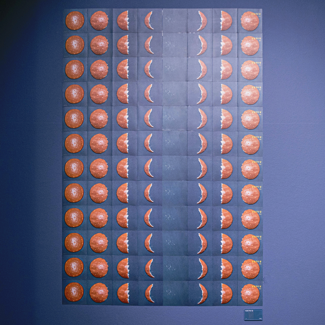 코끼리를 시각이 아닌 촉감으로만 설명한다면 모두가 말하는 코끼리가 다 다르지 않을까요? ‘장님 코끼리 만지기’는 하나에서 수많은 이야기가 나오는 과정을 잘 설명하는데요. 여기 실크 스크린 기법으로 만들어진 코끼리를 확인해보세요. 또 대형 스크린에는 가로세로 낱말퍼즐이 놓여있는데요. 이 또한 멀리서 보면 ‘코끼리’라는 단어가 보입니다. 이처럼 오정택 작가의 작품을 통해 우리는 한 가지를 보아도 서로 다를 수 있는 여러 관점을 이해해볼 수 있답니다.