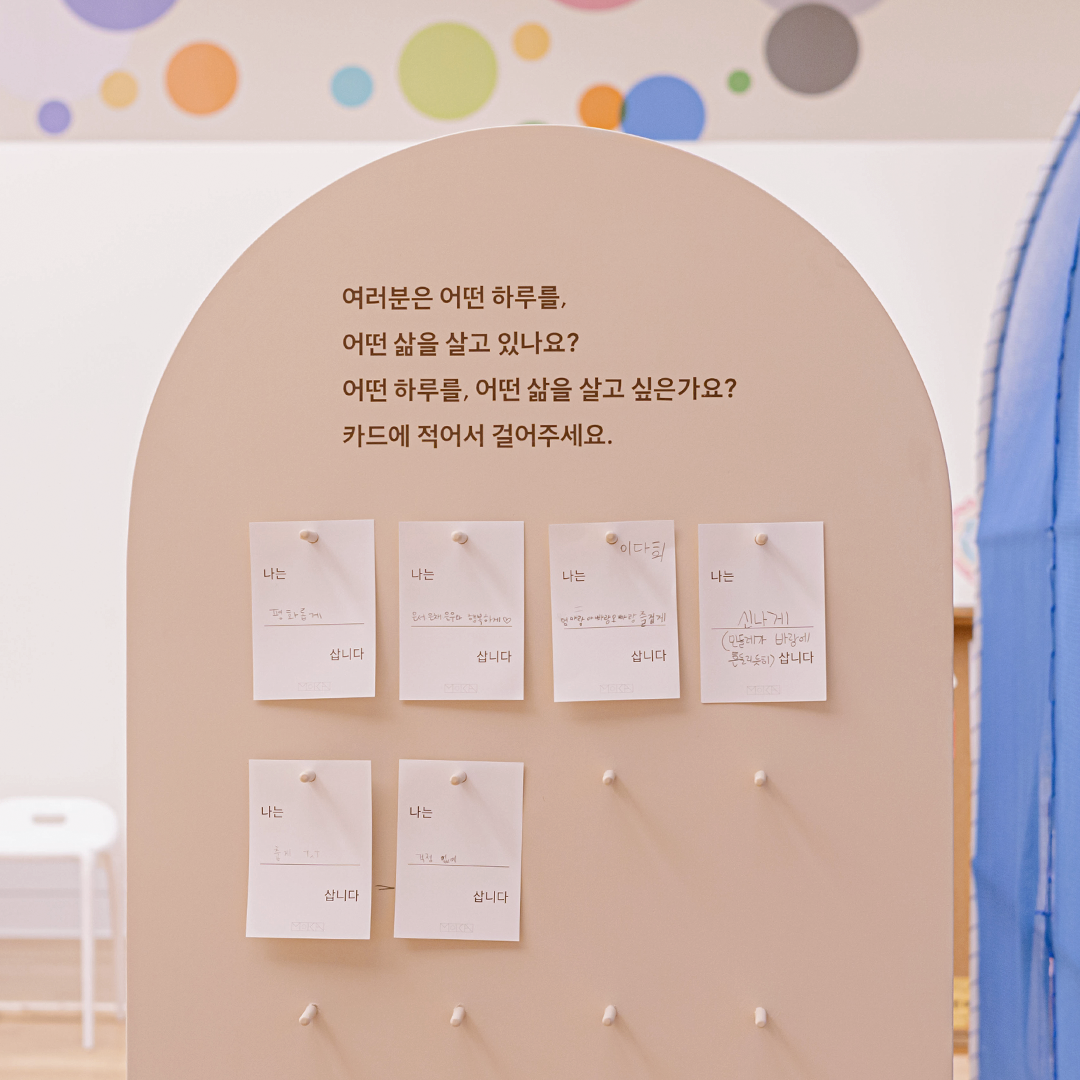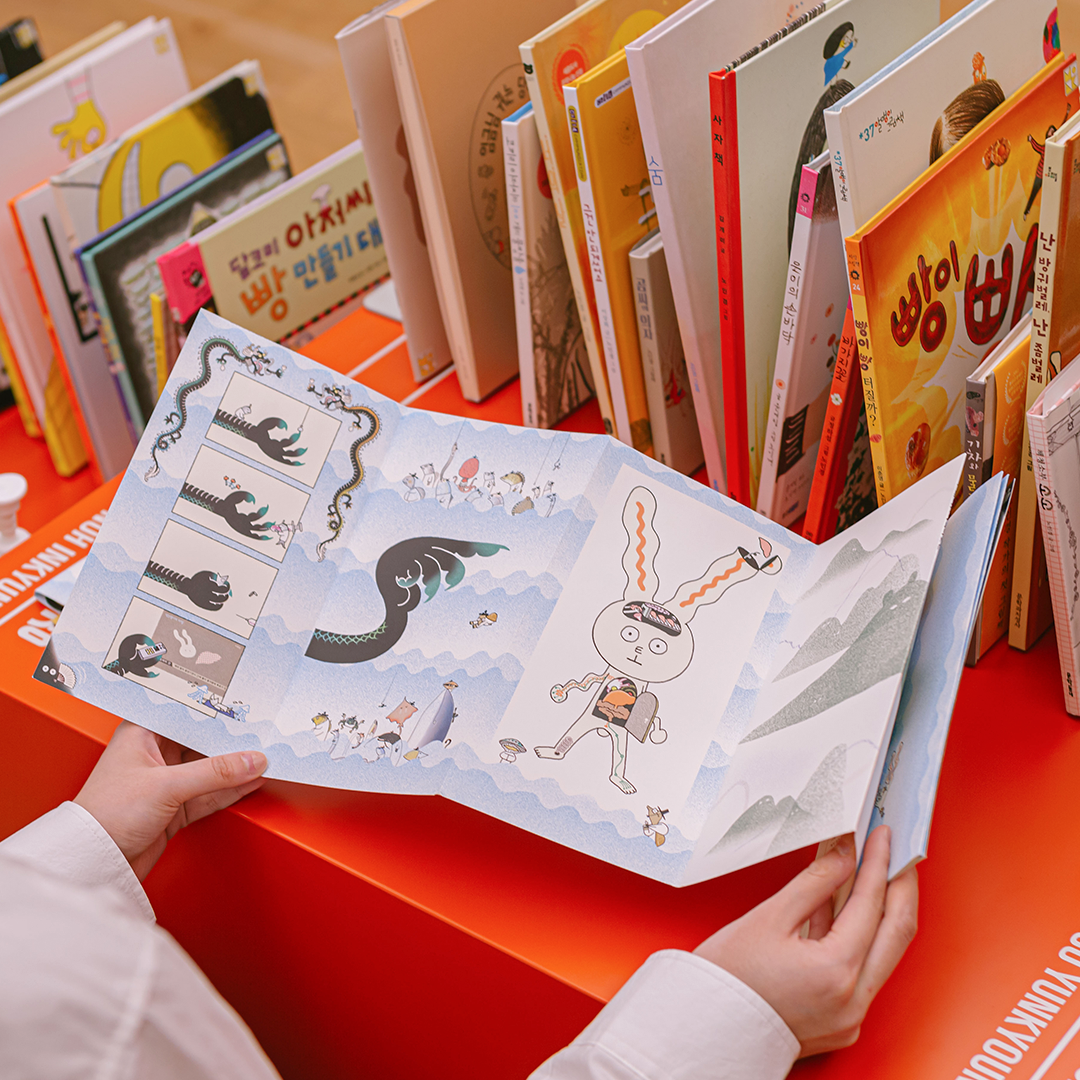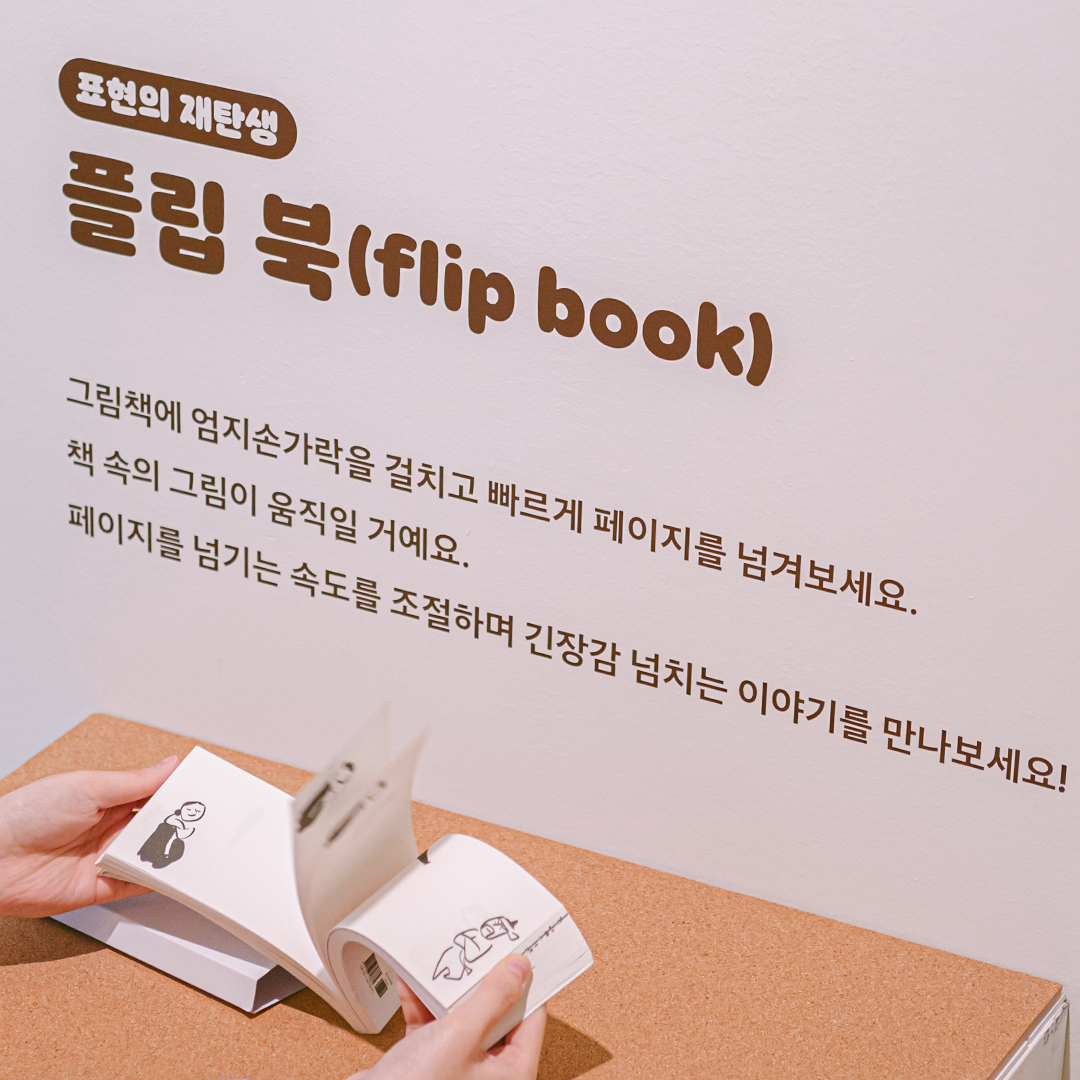 현대어린이책미술관의 <#보따리바캉스> 전시가 더욱 특별한 이유는 전시를 감상할 뿐만 아니라 작품 속에 들어가 여러 가지 체험을 직접 경험해볼 수 있다는 점인데요. 여기 오브제 스탬프를 사용해서 나만의 『종이 오린 전래』를 만들어봅시다. 어떤 이야기가 펼쳐질지 마음껏 상상해봐요. 작품마다 연계된 활동이 있으니 전시를 감상한 후엔 그림도 그리고 글도 쓰며 시간 가는 줄 모르겠네요!