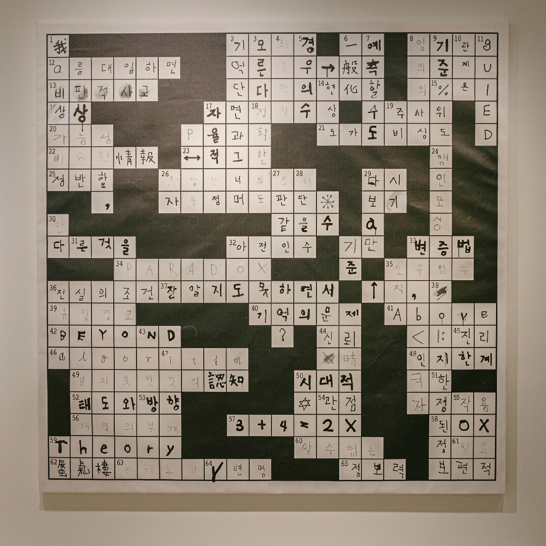 코끼리를 시각이 아닌 촉감으로만 설명한다면 모두가 말하는 코끼리가 다 다르지 않을까요? ‘장님 코끼리 만지기’는 하나에서 수많은 이야기가 나오는 과정을 잘 설명하는데요. 여기 실크 스크린 기법으로 만들어진 코끼리를 확인해보세요. 또 대형 스크린에는 가로세로 낱말퍼즐이 놓여있는데요. 이 또한 멀리서 보면 ‘코끼리’라는 단어가 보입니다. 이처럼 오정택 작가의 작품을 통해 우리는 한 가지를 보아도 서로 다를 수 있는 여러 관점을 이해해볼 수 있답니다.