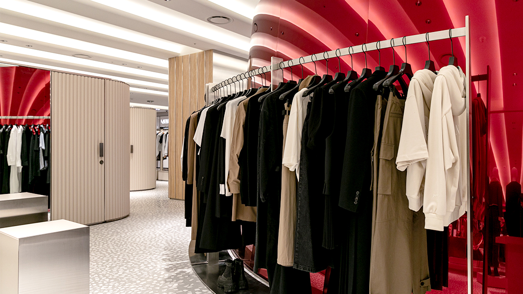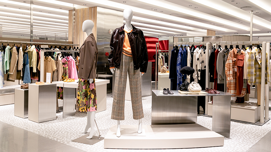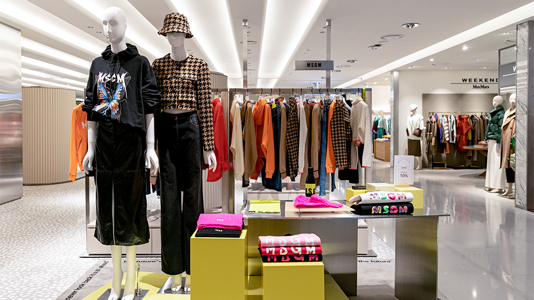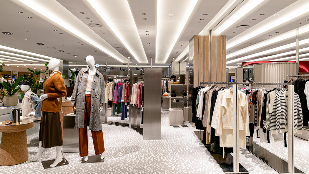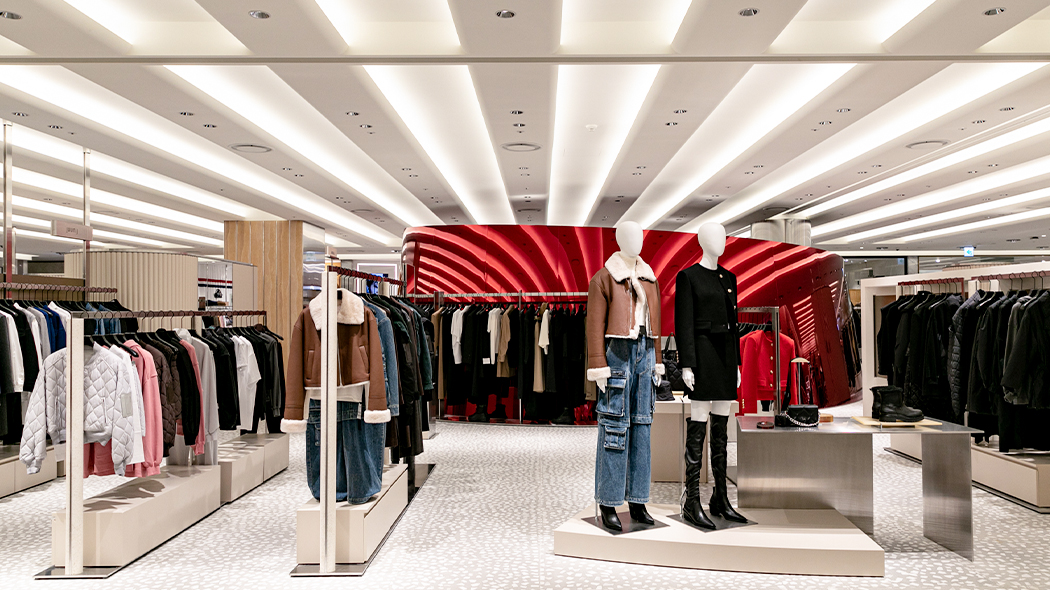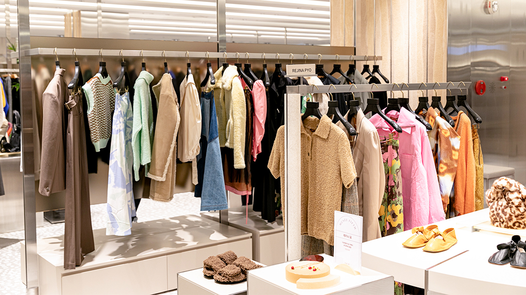 뮤제 피프스에 당도하자 메탈릭한 구조물이 시선을 압도합니다. 이를 통해 뮤제 피프스가 지향하는 트렌디한 톤 앤 매너를 통일성 있게 나타내는데요. 공간 전체가 개방감이 느껴지는 파티션으로 구획을 나누어, 각 브랜드의 아이덴티티는 확실하게 강조하면서도 시즌별 패션 트렌드를 자연스럽게 소구하여 다채로운 쇼핑 경험을 제공합니다.