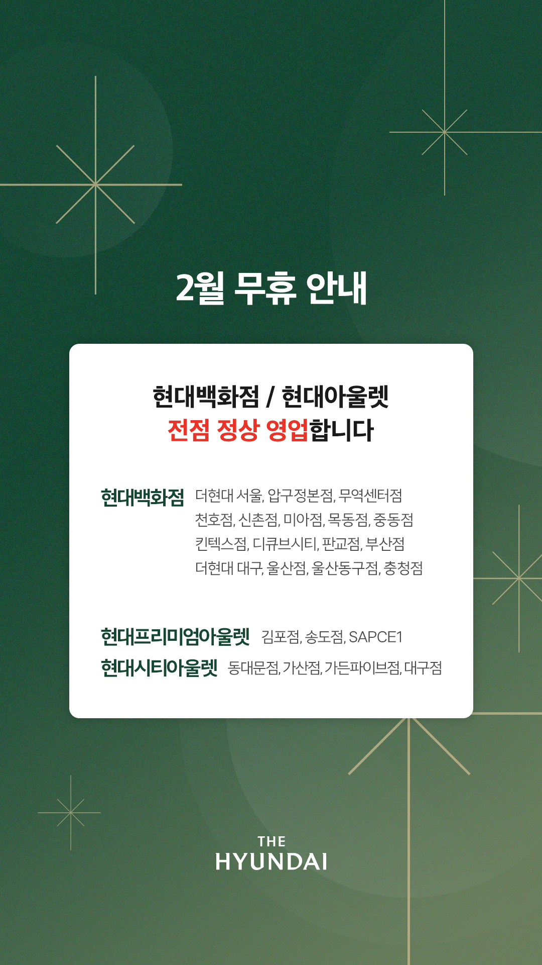 | 현대백화점 1월 휴무 안내 (0) | 2022.12.26 |