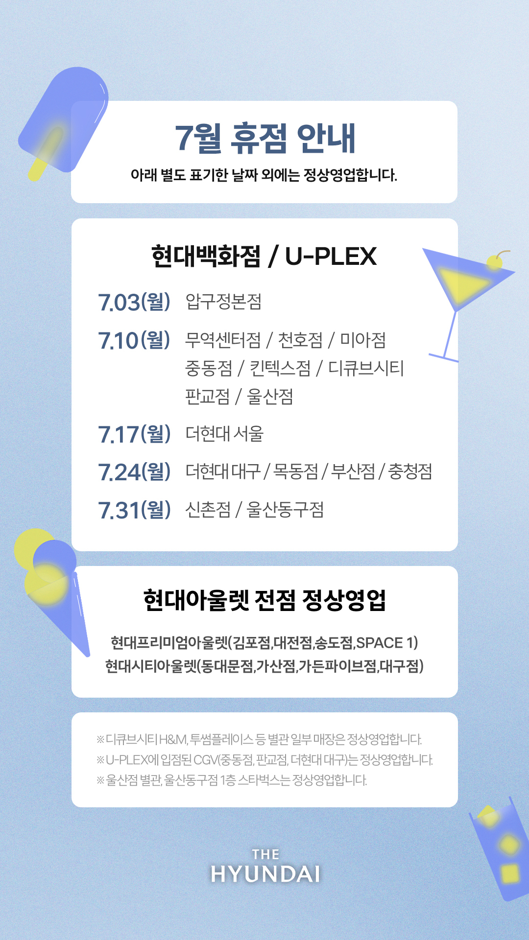 | 현대백화점 6월 휴무 안내 (0) | 2023.05.31 |