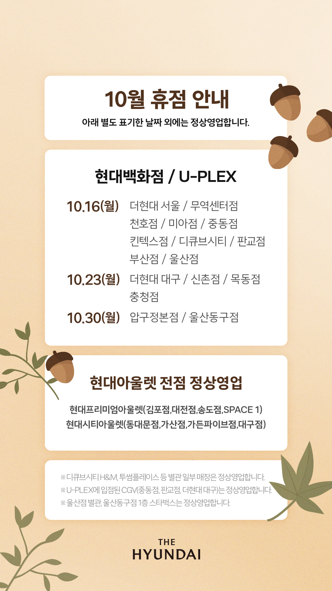 | 현대백화점 11월 휴무 안내 (1) | 2023.10.30 |