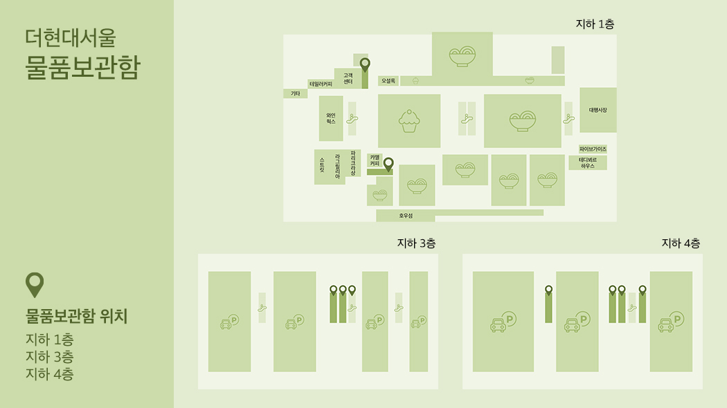 더현대 서울은 지하 1층, 지하 3층, 지하 4층에 무인 물품 보관함이 마련되어 있어요. 또한, 1F Petit Lounge에서 캐리어 보관도 가능하답니다. 무거운 짐을 내려놓고, 가벼운 마음으로 팝업스토어를 즐겨 보세요!