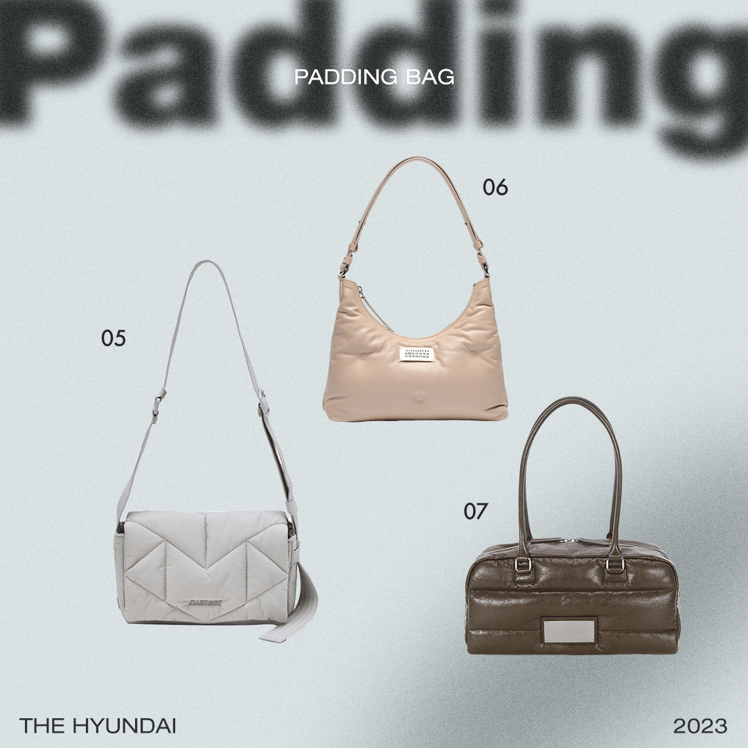 07 마뗑킴 포우 레더 스포티 토트 패딩 백 마뗑킴의 토트백은 패딩과 레더 소재가 적절하게 조화를 이뤄 고급스러운 스포티함을 가져다줍니다. 앞면의 메탈 포인트가 돋보이며, 숄더에 매거나 손으로 들기에도 좋습니다.