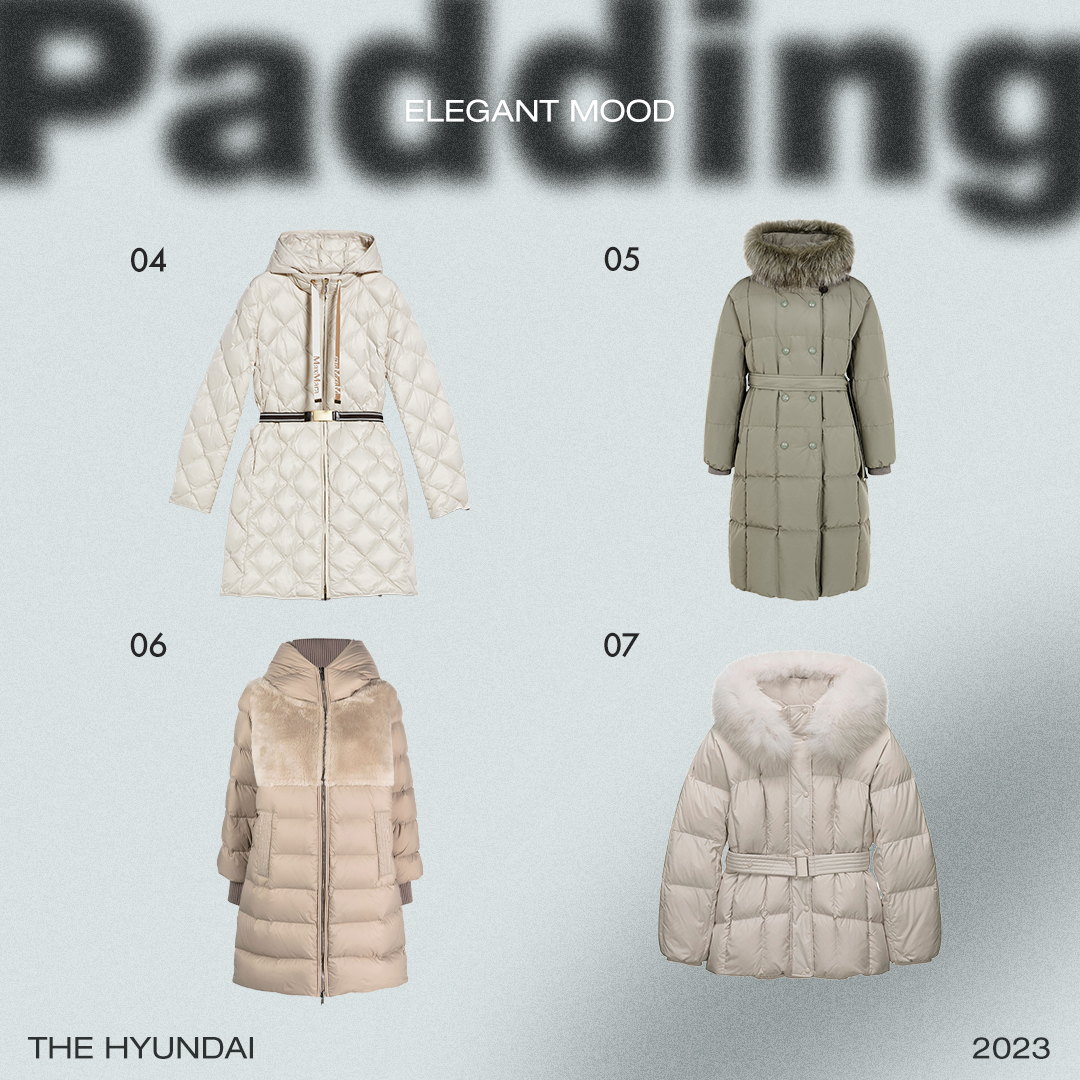 추운 날 대체 불가한 아우터는 바로 패딩이죠. 착용감이 편하고 따뜻한 패딩은 겨울철 필수 아이템입니다. 자주 찾게 되는 아이템인 만큼 패딩이야말로 디자인을 따져 신중하게 골라야 하는데요. 포근한 패딩을 찾고 있다면 현대백화점의 리스트를 참고해 보세요. 퀄리티는 물론 다양한 룩에 활용할 수 있는 아이템들로 선별해 보았습니다.
