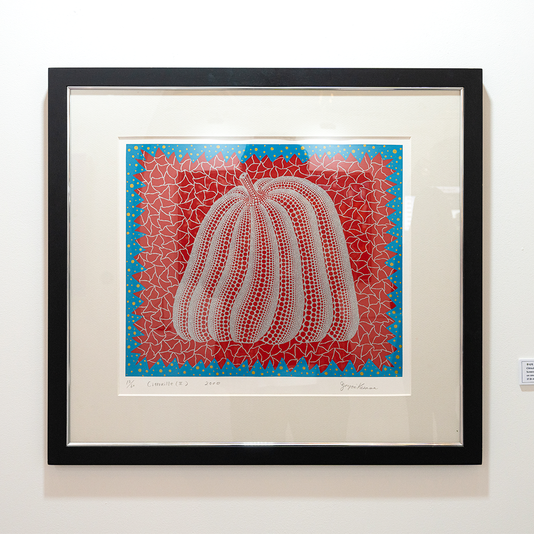 이번엔 1층 열린광장에 마련된 유명 작가 전시공간으로 가볼까요? “호박”으로 유명한 일본의 쿠사마 야요이(Kusama Yayoi) 작가의 작품이 눈길을 사로잡는데요. 점과 망으로 호박을 표현한 <Citrouille(II)>은 작가가 자신의 어린 시절에서 영감을 받았다고 하죠. 병적인 편집증으로 힘들었던 자신의 과거를 강렬한 색감으로 극복하려는 듯합니다. 그녀가 강박적으로 사용한 도트 무늬에는 왠지 모를 연민과 희망이 함께 묻어나네요.