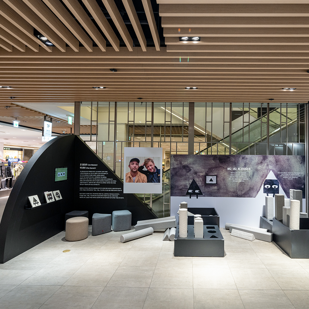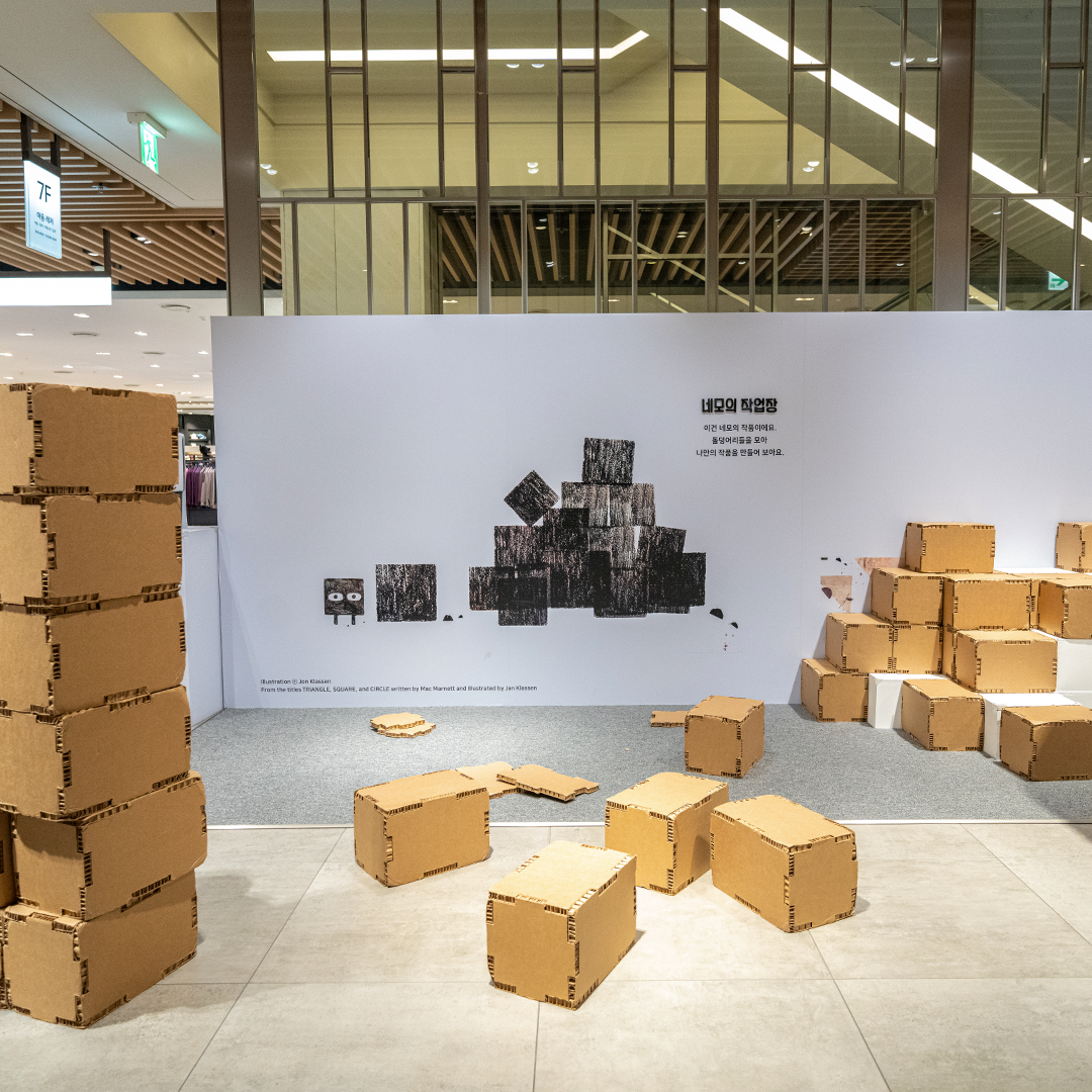 현대어린이책미술관(MOKA)에서 기획하는 그림책 테마 예술 공간인 MOKA STATION PANGYO에서는 아이들이 창의력을 마음껏 발산하고 예술과 더욱 친해질 수 있는데요. 지금 이곳에서는 존 클라센과 맥 바넷의 『세모』, 『네모』, 『동그라미』 작품을 완전히 입체적인 공간으로 탄생시킨 ‘Episode 1. 세모, 네모, 동그라미’ 전시가 열리고 있습니다.