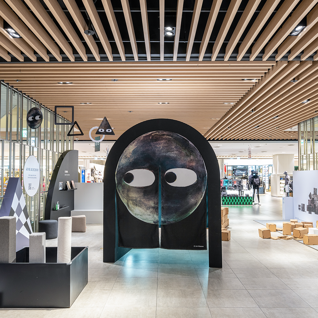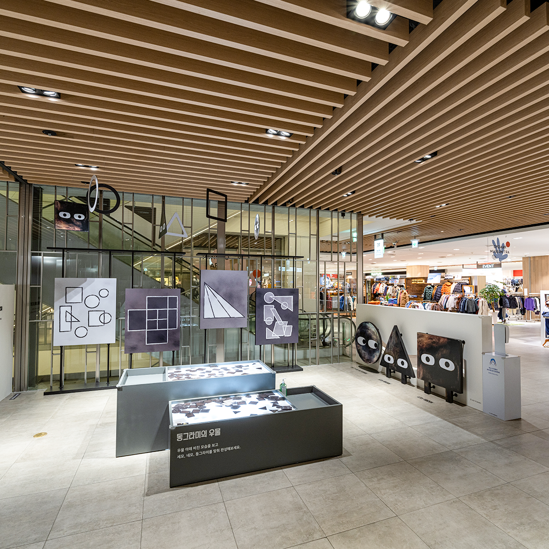 | MOKA STATION PANGYO: Episode 1. 세모, 네모, 동그라미 전시기간: 2021년 10월 8일 ~ 전시장소: 7층 에스컬레이터 사이 |
