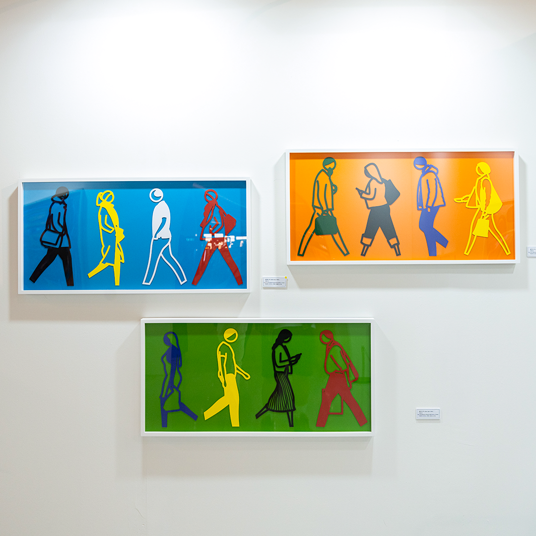 21세기를 대표하는 팝아트 아티스트 줄리안 오피(Julian Opie)의 <Street> 시리즈 중에서 3개의 작품도 함께하고 있는데요. 여느 때와 같이 일상을 살아가는 현대인의 모습이 담겨 있네요. 굵은 선과 몇 가지의 색만으로 단순하게 표현하는 작가의 시그니쳐와 같은 특징들이 <Street> 시리즈에서도 뚜렷합니다.