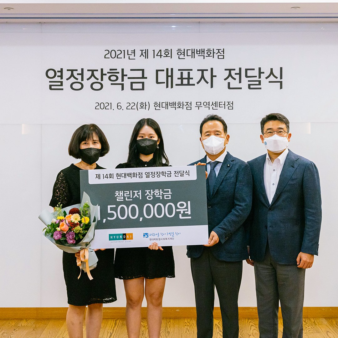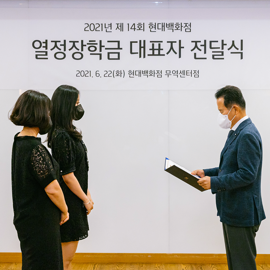 약식으로 진행된 전달식이었음에도 ‘열정장학금’을 이어가고자 하는 현대백화점의 의지와 수상자 가족들의 기쁜 마음은 온전하게 느낄 수 있었는데요. 다음 ‘열정장학금’ 전달식에서 새롭게 수여받게 될 가족의 탄생을 기대해주세요.