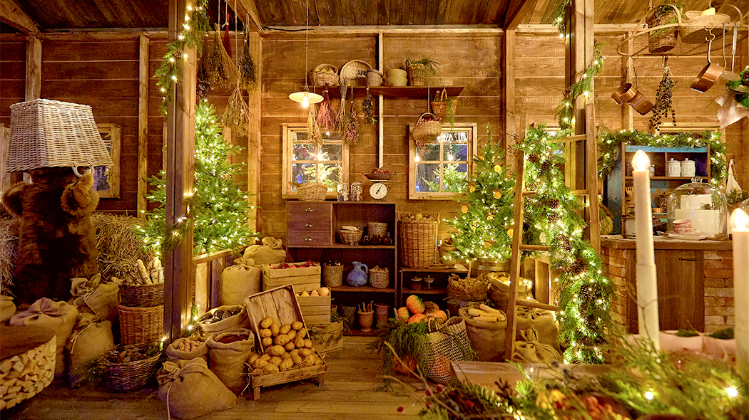 ‘곡물창고’ 컨셉에 맞게 무역센터점 1층 출입구에 거대한 ‘그랑지’가 등장했어요. 이름에 걸맞게 목가적이며 이국적인 느낌을 자아냅니다. 화려한 대형 크리스마스트리들로 둘러싸인 해리와 할아버지의 곡물 창고를 표현한 이 대규모 공간 안에서는 깊은 숲 속에 자리한, 따뜻한 오두막의 분위기를 그대로 느낄 수 있는데요.