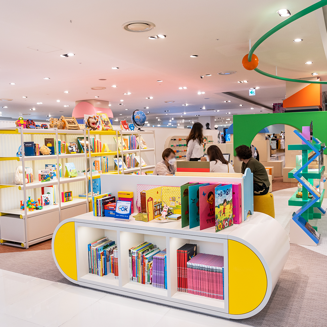아이를 동반한 가족 고객에게 쁘띠플래닛은 킨텍스점만의 차별화된 키즈 콘텐츠를 제공하는데요. 도서, 완구, 키즈 베딩, 그리고 코스메틱 등 아이를 위한 다양한 제품들을 한 공간에서 쇼핑할 수 있는 것은 물론 아이들이 너무나도 좋아하는 놀이 공간까지 갖추고 있어요.