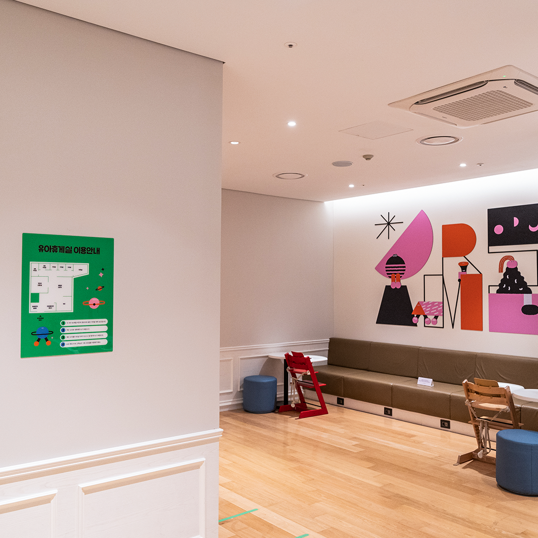 영아를 위한 보다 특별하고 프라이빗한 공간이 필요하다면 유아휴게실을 찾아보아요. 아이와 엄마만을 위한 독립된 수유실부터 아이에게 필요한 세심한 온도를 준비할 수 있는 따뜻한 물과 전자레인지까지, 엄마의 마음을 잘 아는 현대백화점에서 마련한 유아휴게실에서 아이와 엄마에게 꼭 필요한 시간을 알뜰하게 챙겨보세요.