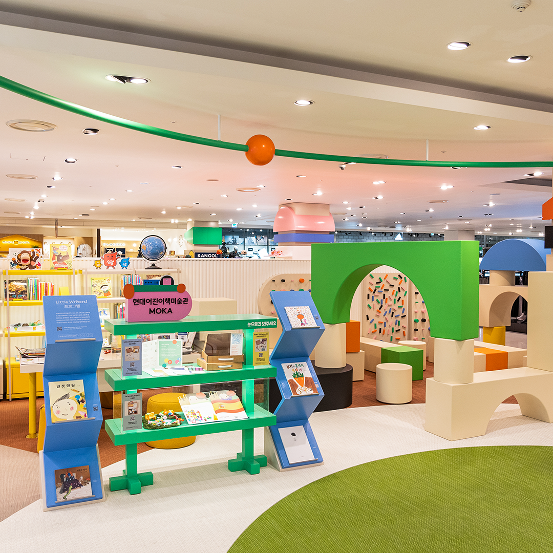 킨텍스점 쁘띠플래닛은 가족 고객이 편하게 모일 수 있고 즐겁게 오래 머무를 수 있는, 키즈 전문관인데요. 부모가 바라고 아이가 꿈꾸던 대로 교육과 즐거움을 함께 챙기는 에듀테인먼트(edutainment)를 실현한 키즈 특화 공간을 경험할 수 있어요. 특히 다른 곳에서 찾기 어려운 차별화된 콘텐츠들이 가득하답니다. 유·아동 그림책 전집 전문 출판사인 아람북스와 현대어린이책미술관(MOKA)의 특별한 연계 공간도 그 중 하나인데요. MOKA에서 소개되었던 책을 아람북스에서 발견하는 반가움, 아람북스에 앉아 흥미롭게 읽었던 책을 MOKA 온라인 콘텐츠로 이어가는 색다른 기쁨을 누려보세요.