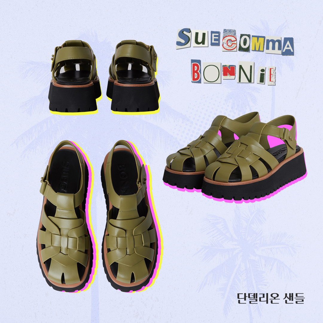 어부들이 신는 샌들이란 뜻으로 이름 붙여진 ‘피셔맨 샌들’. 물 빠짐에 유용하게 만들어져 물놀이에도 편하게 신기 좋은 아이템인데요. 안정감 있는 굽이 오래 신어도 편안한 착용감을 전합니다. 캐주얼한 베다 굽에 폴리곤 모양의 갑피 라인 디자인이 청키 하면서도 귀여운 느낌을 자아내는데요. 유니크한 올리브 색감으로 스커트나 팬츠, 어떤 코디에도 포인트 아이템으로 활용하기에 좋답니다! 제품 바로가기