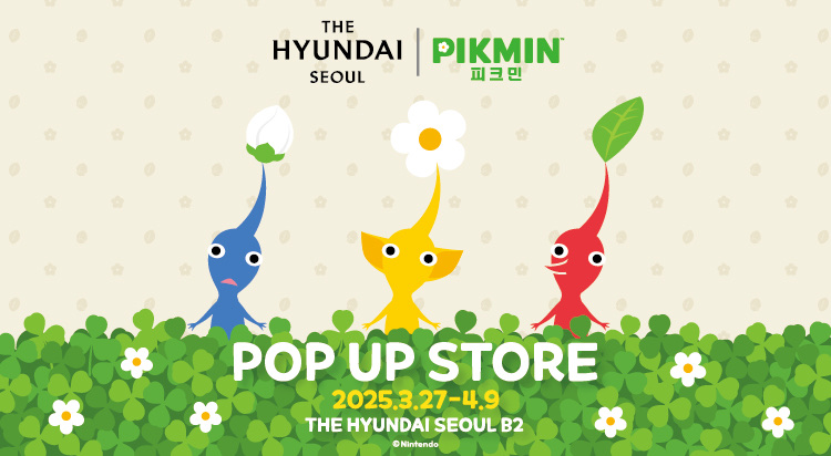 ㆍ피크민 스탬프 랠리 이벤트 더현대 서울 곳곳에 숨겨진 피크민 스탬프를 모두 완성 후 팝업스토어에 방문 시 피크민 포스트잇 증정