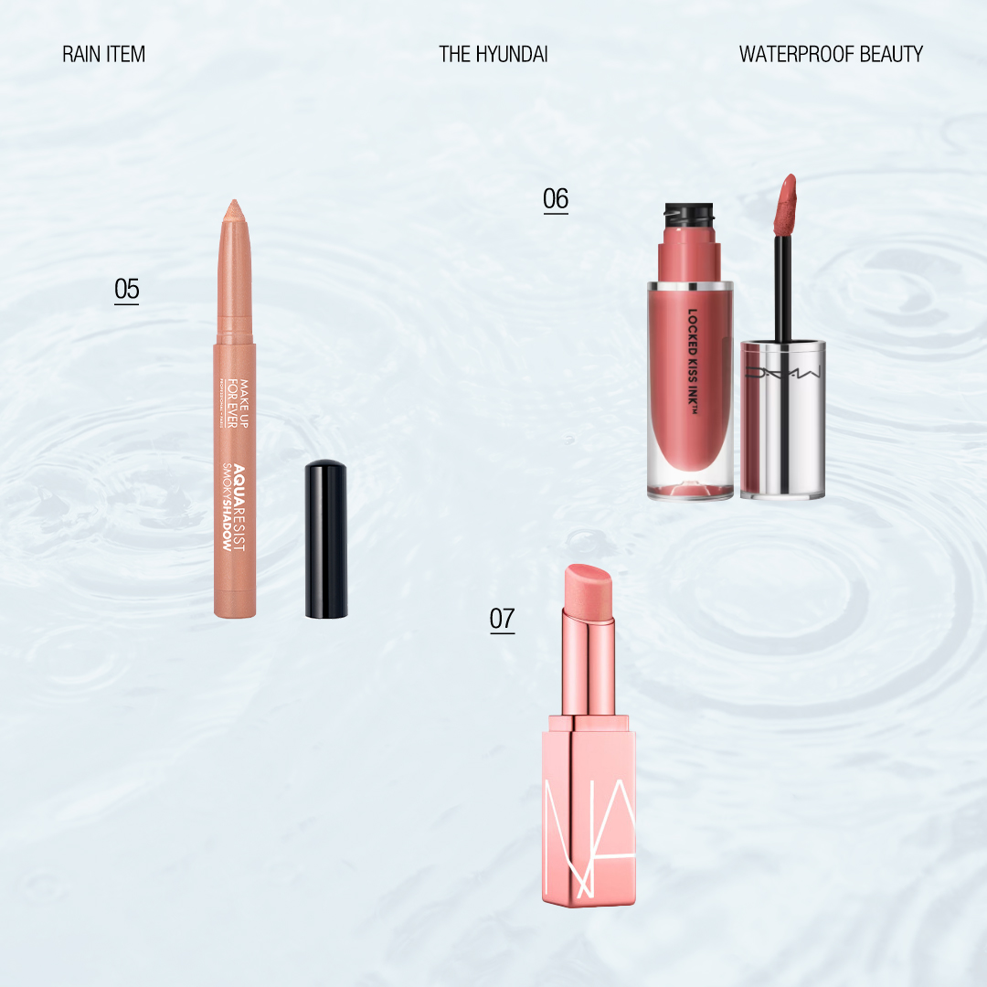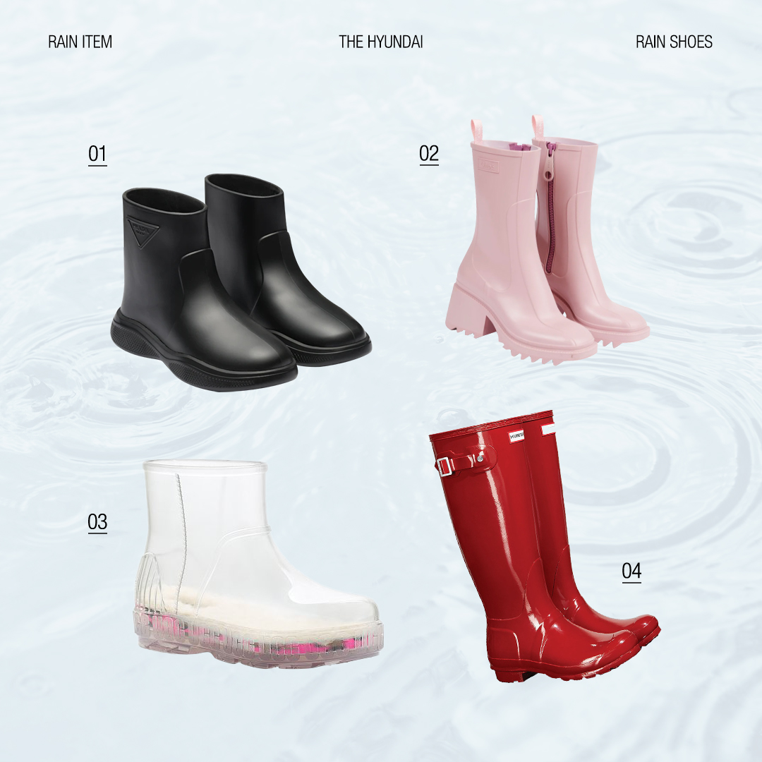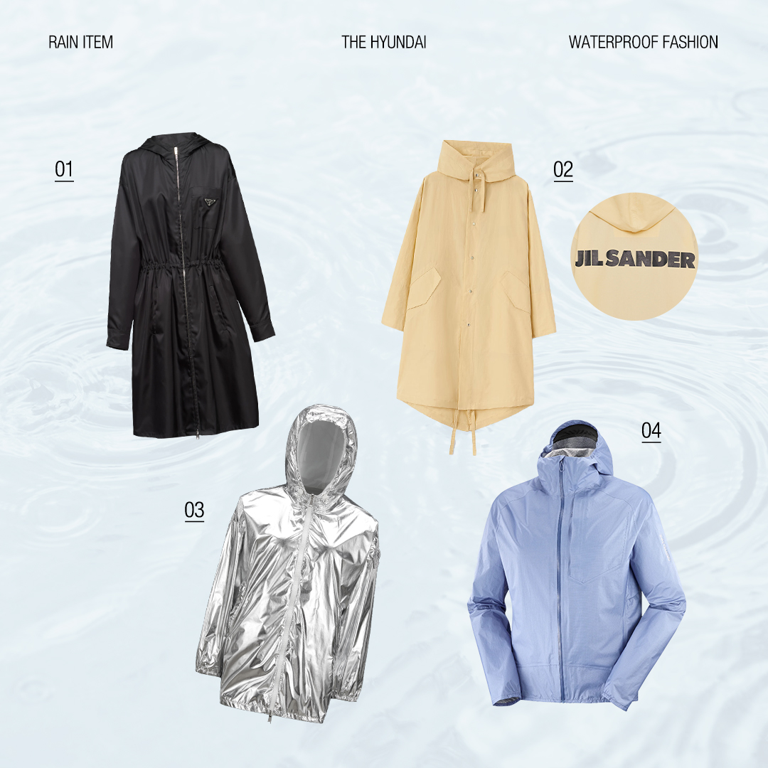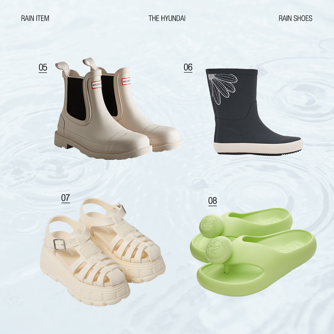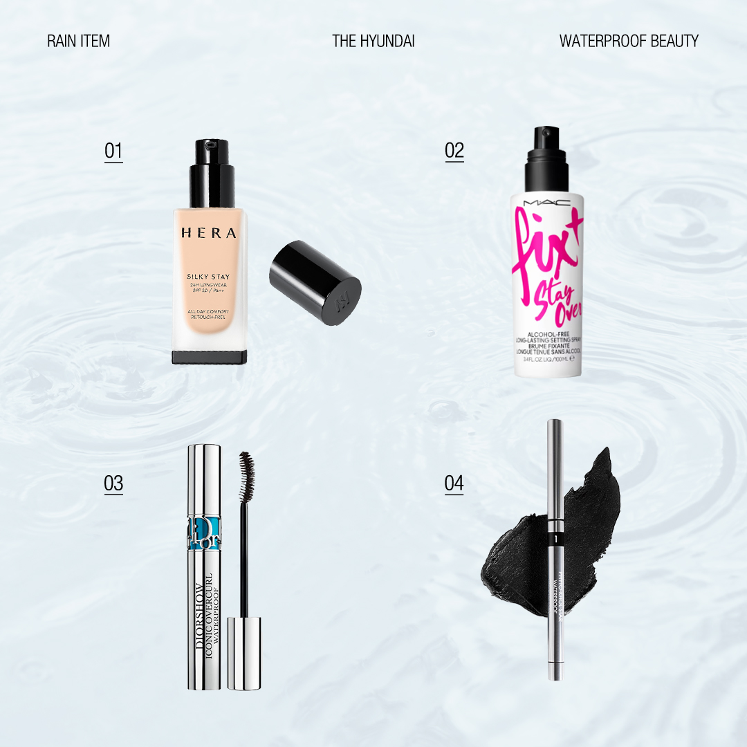 전체적인 룩을 스타일리시하게 만들어주는 워터프루프 패션과 더불어 기능성까지 갖춘 레인 부츠, 흐트러짐 없는 메이크업을 완성시켜 주는 아이템까지 모두 함께 있습니다. 현대백화점의 추천 템과 함께 비가 와도 불안함 없이 외출해 보세요.
