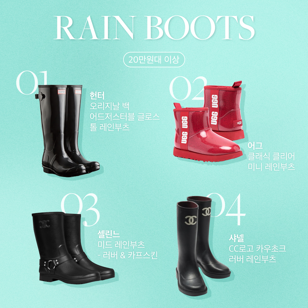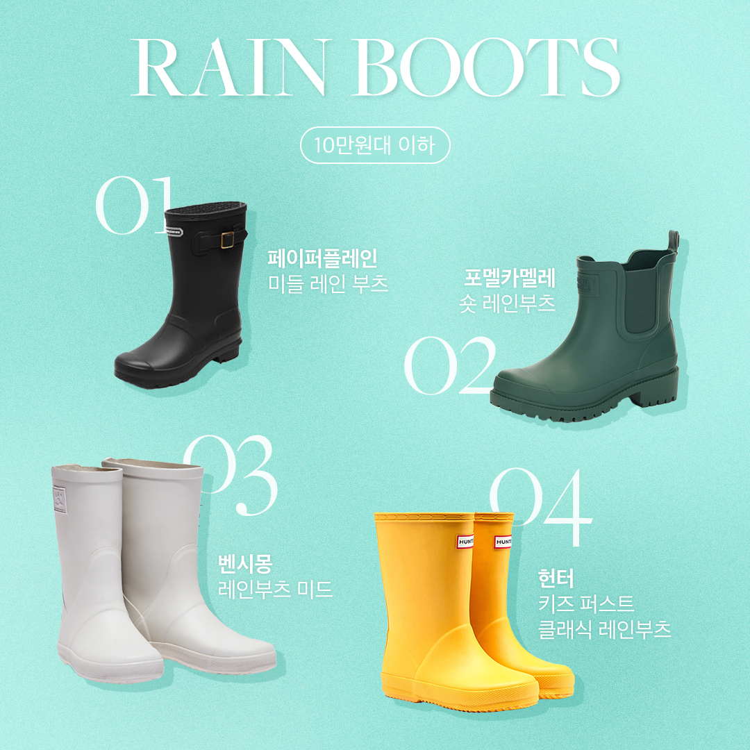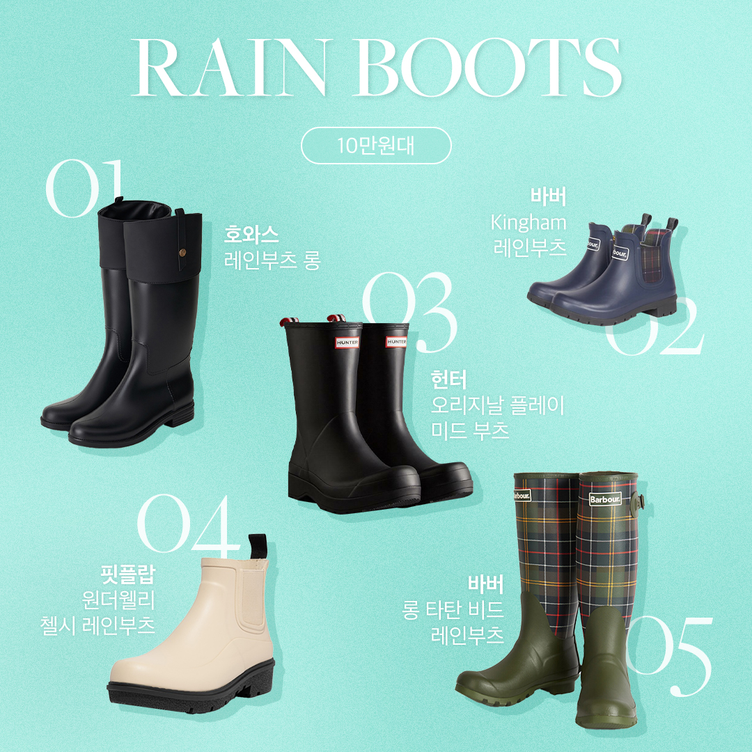 계절마다 결심하게 되는 것들이 있습니다. 그중 하나가 레인부츠 아닐까요? ‘이번 여름엔 꼭 하나 장만해 봐야지’ 생각하다가도, 어떤 게 좋을지 고민하는 사이 장마철이 끝나버려 번번이 다음을 기약하곤 하니까요. 하지만 계절을 가리지 않고 들려오는 비 소식에 한 철 아이템을 넘어 필수품이 되어가고 있는 레인부츠. 오랜 고민을 끝내 줄 가격대별 리스트를 소개합니다.