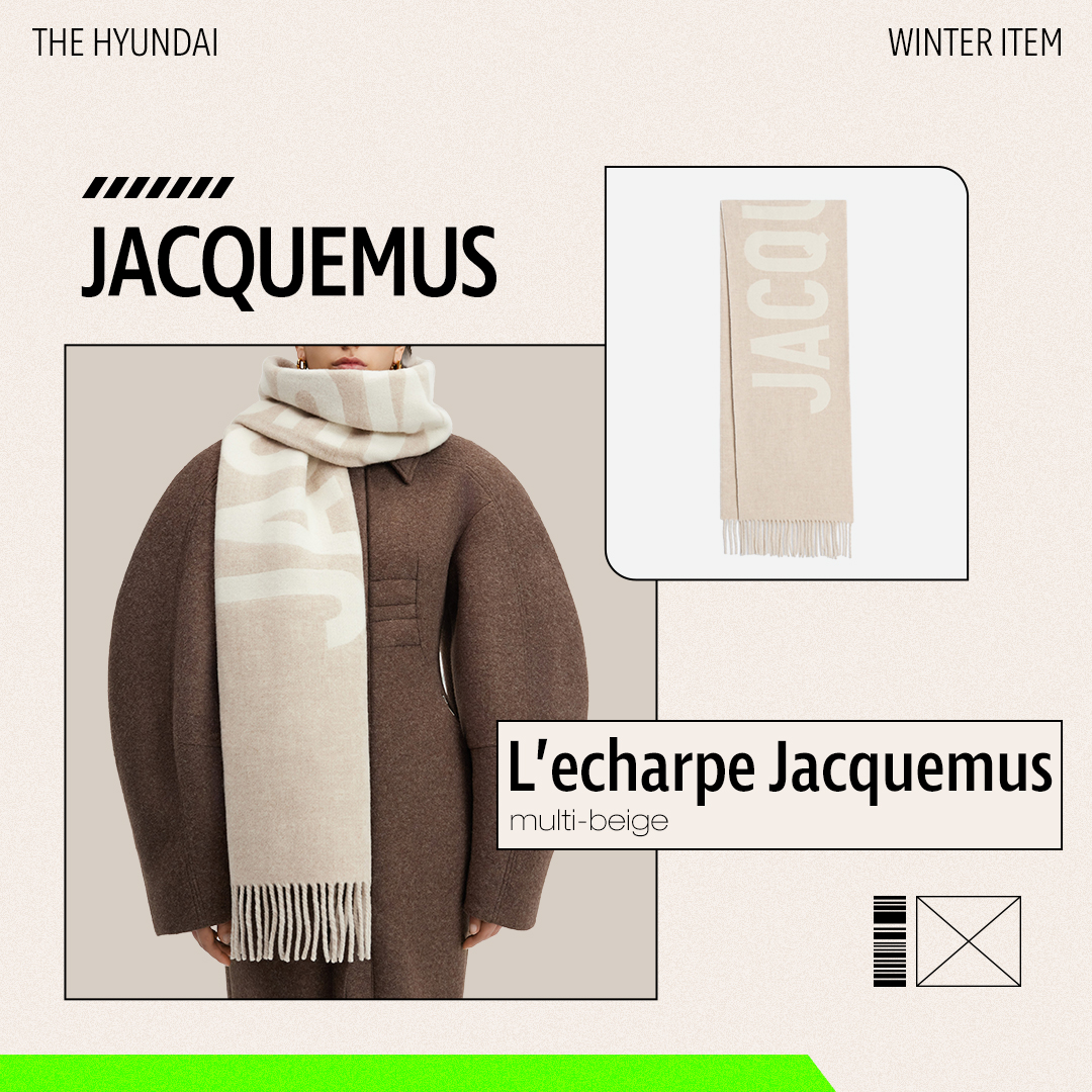 자크뮈스의 스카프는 베이지 바탕에 아이보리 컬러의 로고 플레이가 더해진 아이템입니다. 로고가 볼드하게 삽입되었음에도 톤온톤 디자인으로 오히려 고급스러운 분위기를 연출해 주는데요. 차분한 무드의 베이지 컬러로 다양한 컬러의 아우터에 매치하기 좋으며, 우아하면서도 클래식한 매력을 강조할 수 있어요.