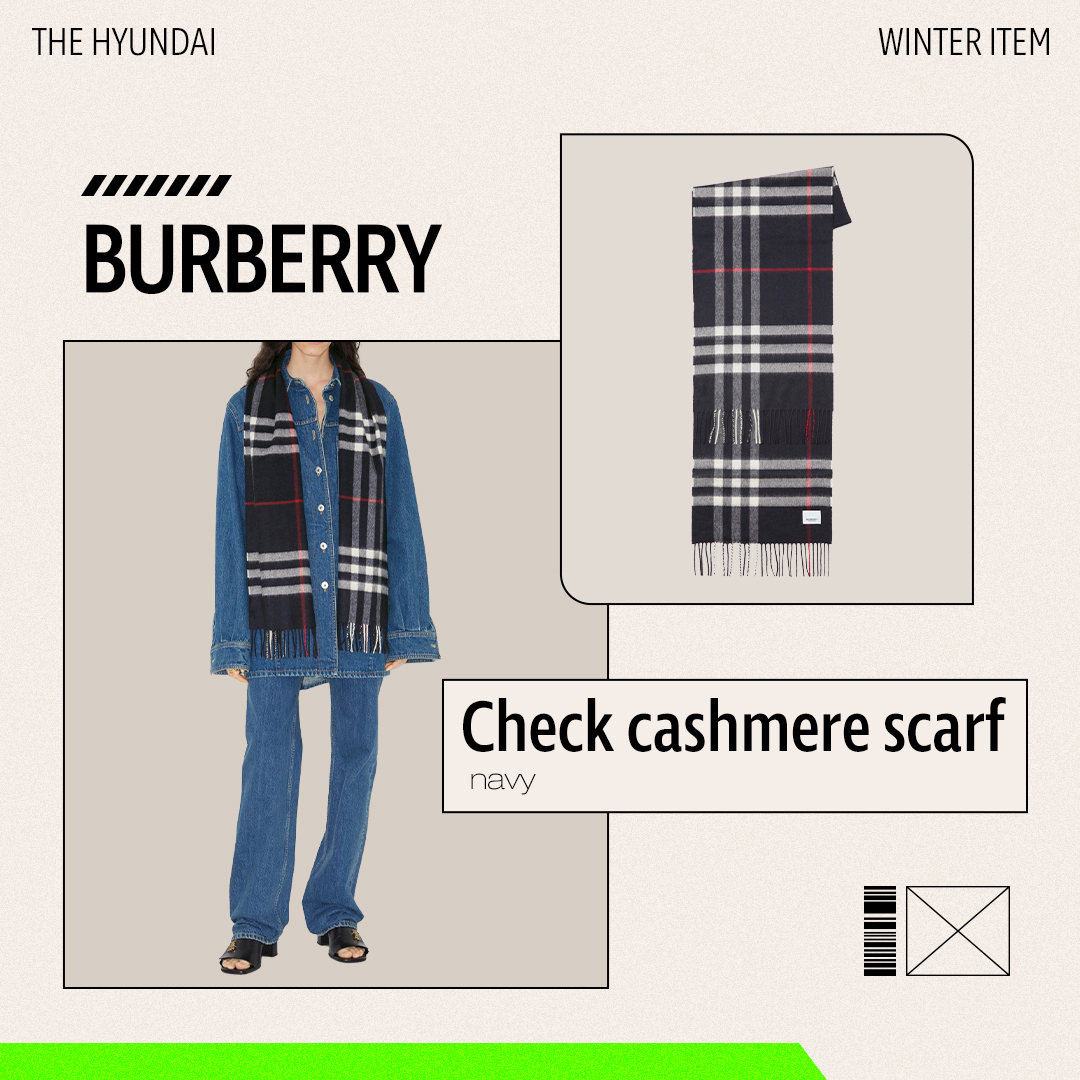 캐주얼룩뿐만 아니라 포멀한 룩에도 잘 어울리는 버버리의 캐시미어 스카프는 하나쯤 가지고 있으면 좋은 위시 리스트 아이템인데요. 캐시미어 소재로 부드러운 촉감이 특징이며, 양 가장자리의 프린지 디테일이 멋스러운 스카프입니다. 가장자리에 이니셜도 새길 수 있어 세상에 단 하나뿐인 나만의 아이템으로 만들거나 특별한 날 소중한 사람에게 선물하기 좋습니다.