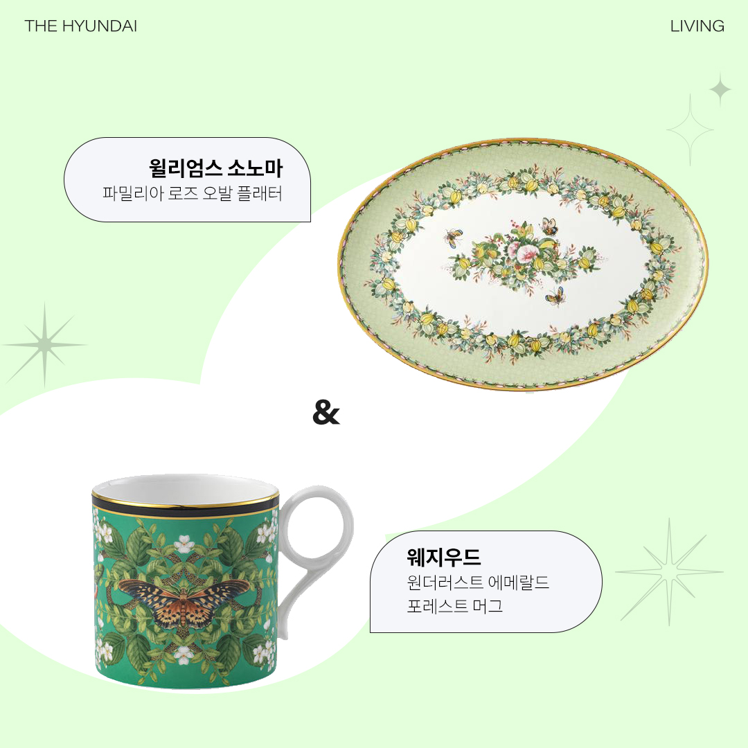 여름날의 화려함을 식탁에 담아보세요. 원더러스트는 웨지우드의 화려하고 정교한 패턴들을 현대적인 감각으로 재창조한 컬렉션인데요. 특히 영국 동식물의 절묘한 믹스에서 영감을 받은 에메랄드 포레스트 머그는 식탁 위에서 여름의 계절을 표현할 수 있는 훌륭한 오브제가 되어줍니다. 머그 제품 바로가기
