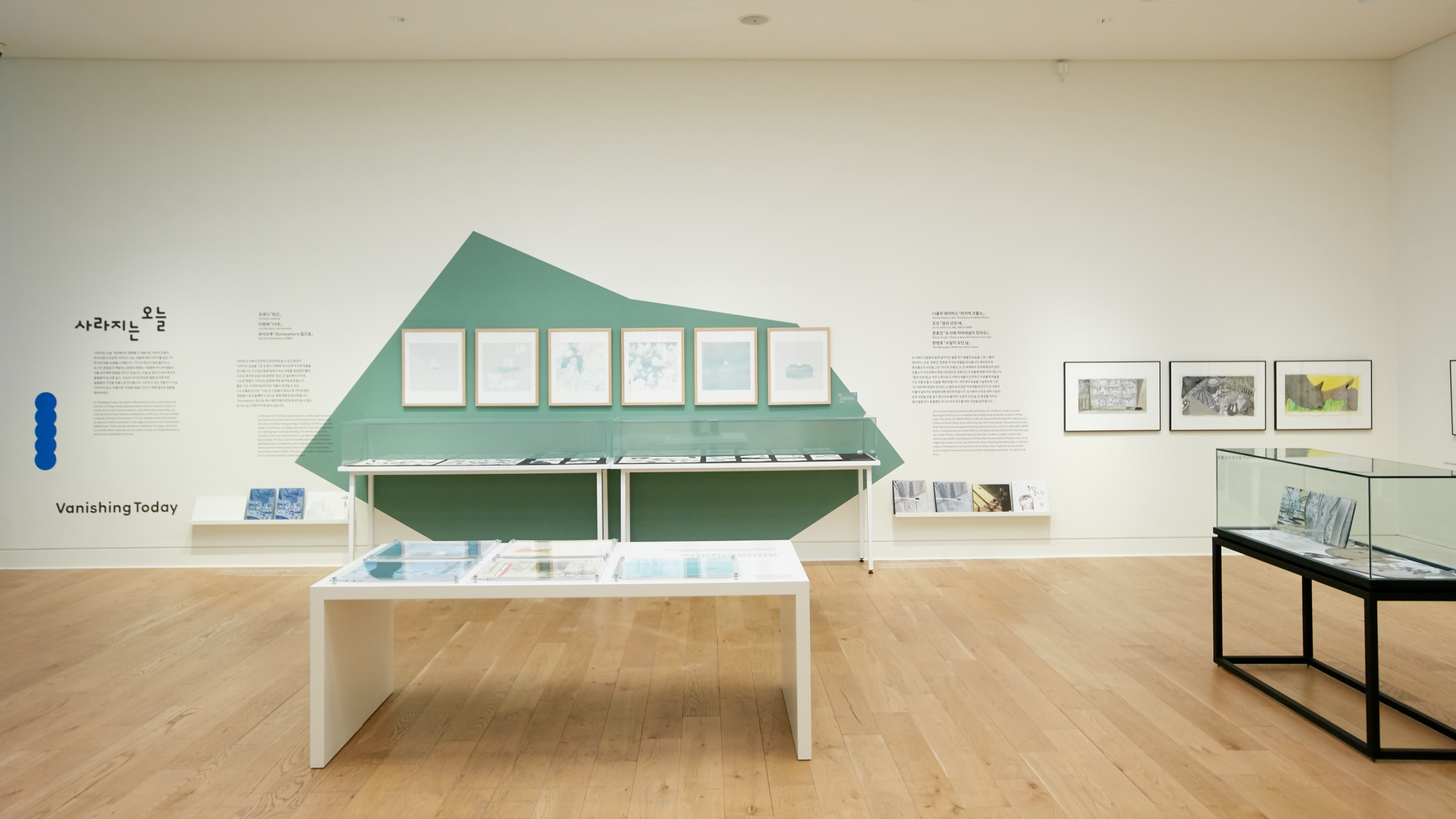 6층의 ‘사라지는 오늘' 섹션에서는 평화롭고 아름다운 자연의 균형이 무너지면서 조금씩 사라지고 있는 것들에 대한 이야기를 담은 작품 점을 소개합니다. 지구의 온도가 계속해서 오르고, 도시 개발이 멈추지 않는 오늘날의 환경은 인간뿐 아니라 동물과 식물 모두에게 깊은 영향을 미치고 있습니다. 빙산이 녹아 북극의 동물들이 삶의 터전을 잃고, 사냥과 서식지 파괴로 멸종위기에 처한 동물들의 사연을 작품으로 만나봅니다. 사라지고 있는 것들이 더 이상 사라지지 않도록 우리가 지금 할 수 있는 일은 무엇일지 함께 고민해 보는 시간을 가져보아요.