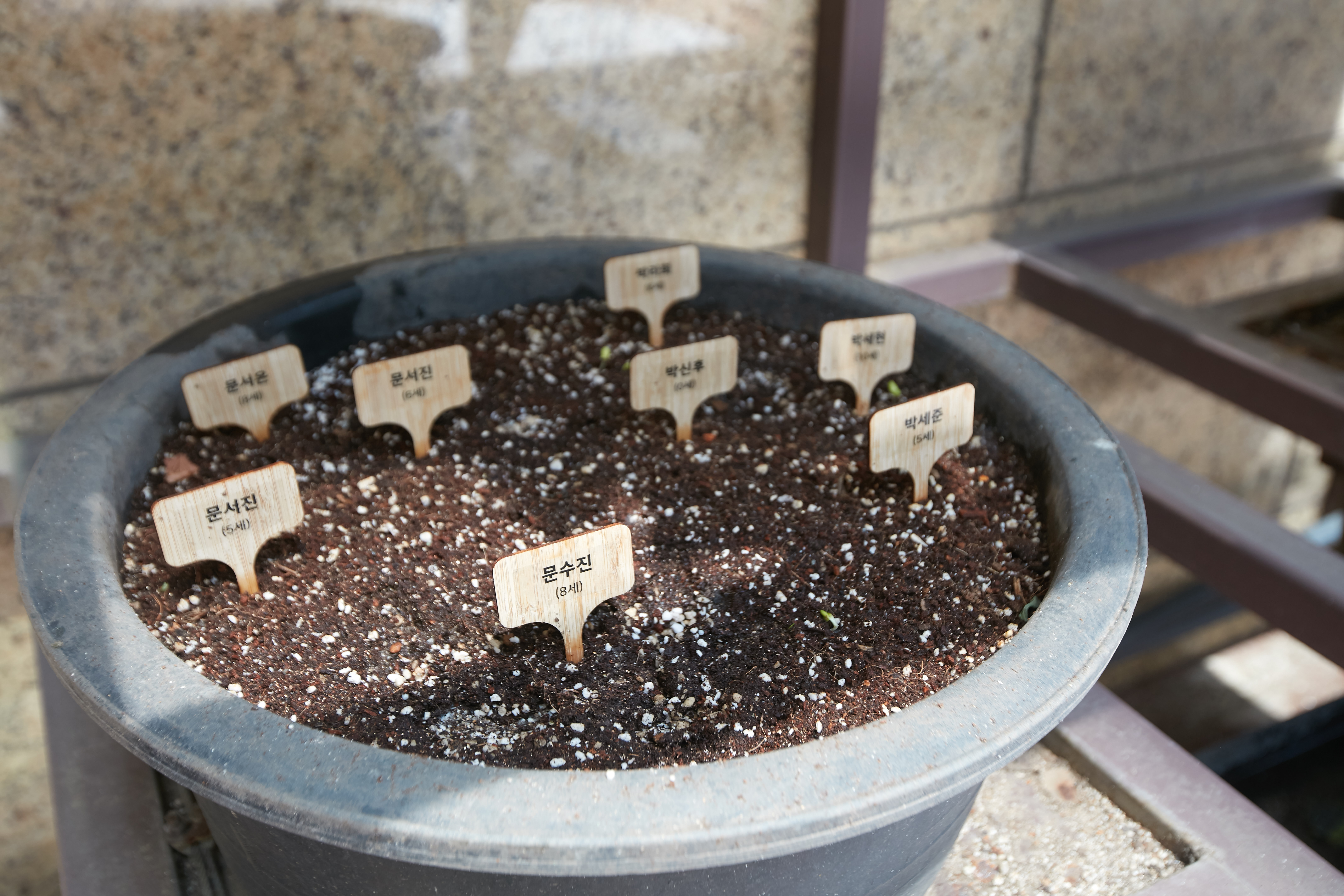 이러한 자연의 위대한 생명력은 현대어린이책미술관의 아틀리에 가든에서도 느껴볼 수 있습니다. 이곳에 사전 접수로 선정된 100명의 어린이의 이름을 새긴 씨앗을 식재하고, 그 어린이들이 가정에서도 식물을 키우는 재미를 느낄 수 있도록 씨앗과 관찰 일지를 전달했습니다. 오는 6월에는 씨앗 관찰 활동을 통해 아이들이 자연과 깊은 교감을 나누어 보는 ‘씨앗 파티’도 예정되어 있어요.