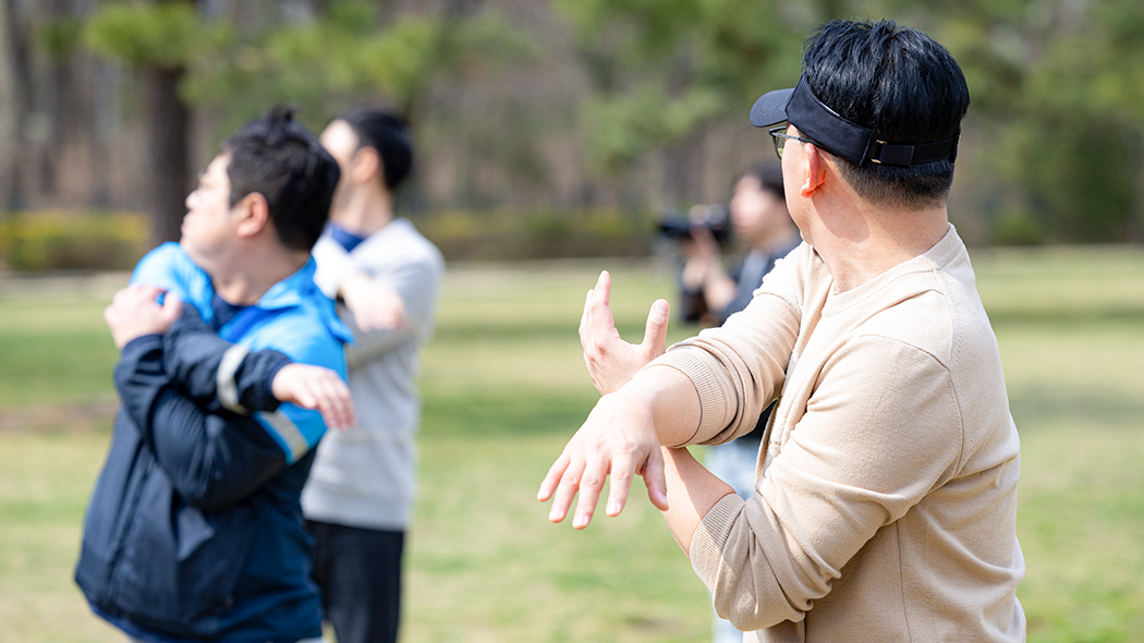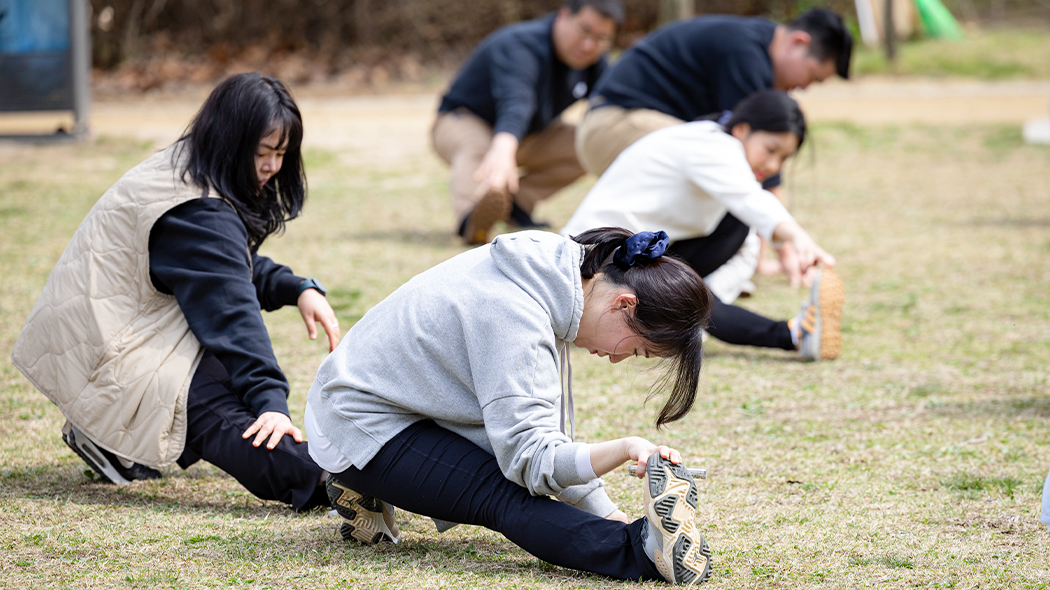 활동 시작에 앞서 동료들이 다치지 않고 안전하게 나무 심기를 끝마칠 수 있도록 스트레칭으로 몸을 풀어주었어요. 팔다리를 좌우로 흔들면서 체온을 높이고, 오전 업무로 인해 굳어있던 근육들을 유연하게 만들어주었죠. 그럼, 이제 본격적으로 나무를 심으러 가볼까요?