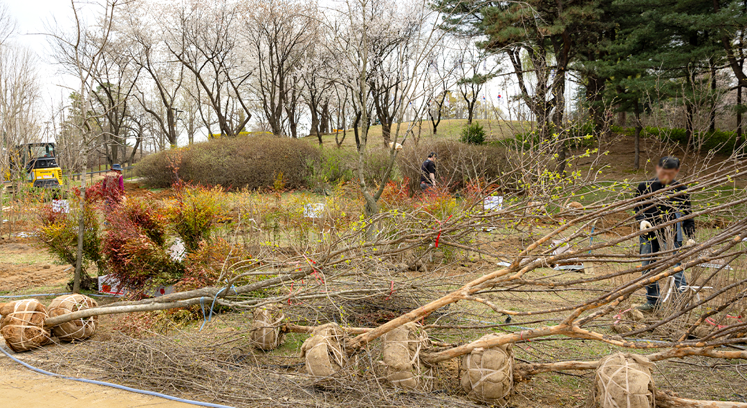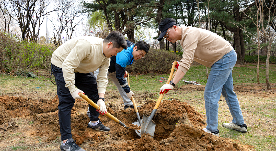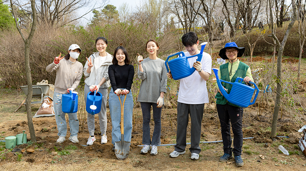 함께 땀 흘리며 도시공원에 생기를 더하다 보니, 어느새 식재들이 모두 심어졌어요. 아직은 어린 나무들이지만, 조금씩 성장하여 싱그러운 도시를 만드는 데 이바지할 거예요. 이번 나무 심기 활동은 식목일의 의미를 느끼고 되새기는 계기가 되었던 하루였습니다.