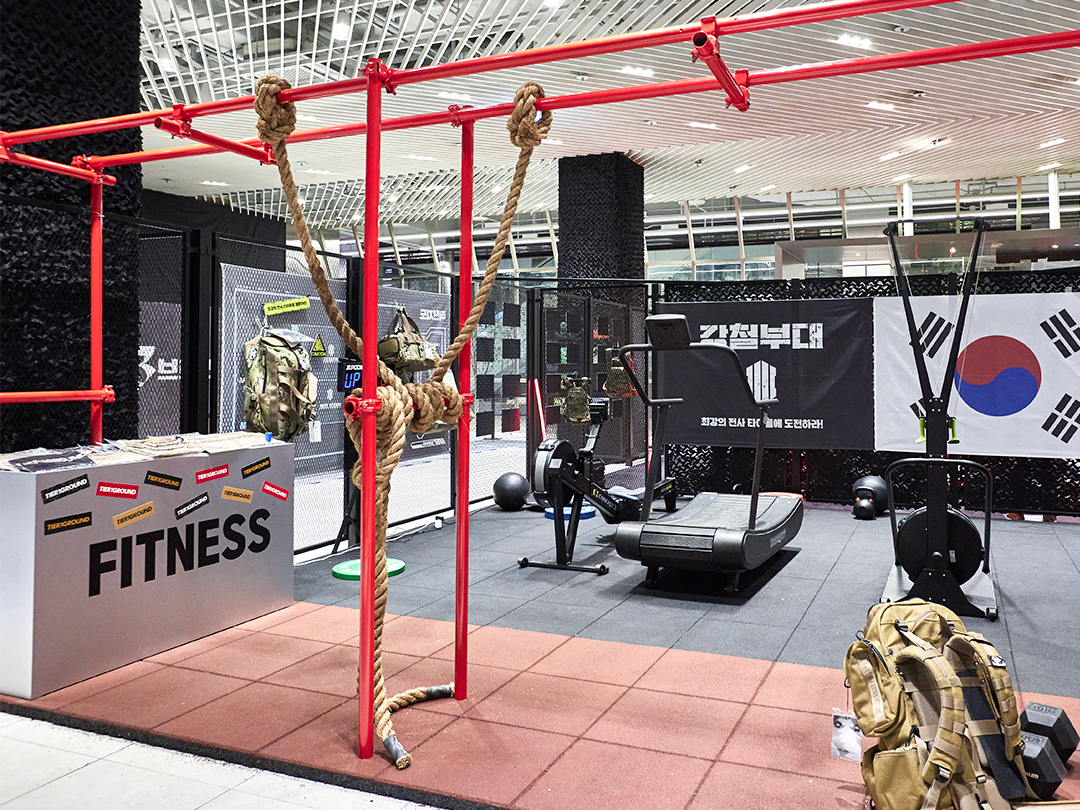 그 뒤편으로는 강철부대원의 기록에 도전해 볼 수 있는 강철 헬스장이 여러분을 기다립니다.