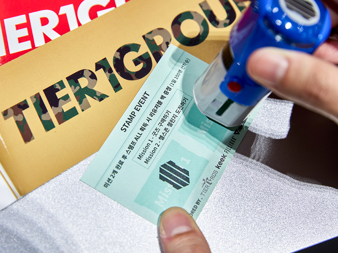 굿즈를 구매하고 하나, 헬스존 챌린지에 도전하고 하나, 총 2개의 스탬프가 찍힌 입영통지서를 보여주면 하루 100명 한정으로 리유저블백을 증정한다고 합니다.