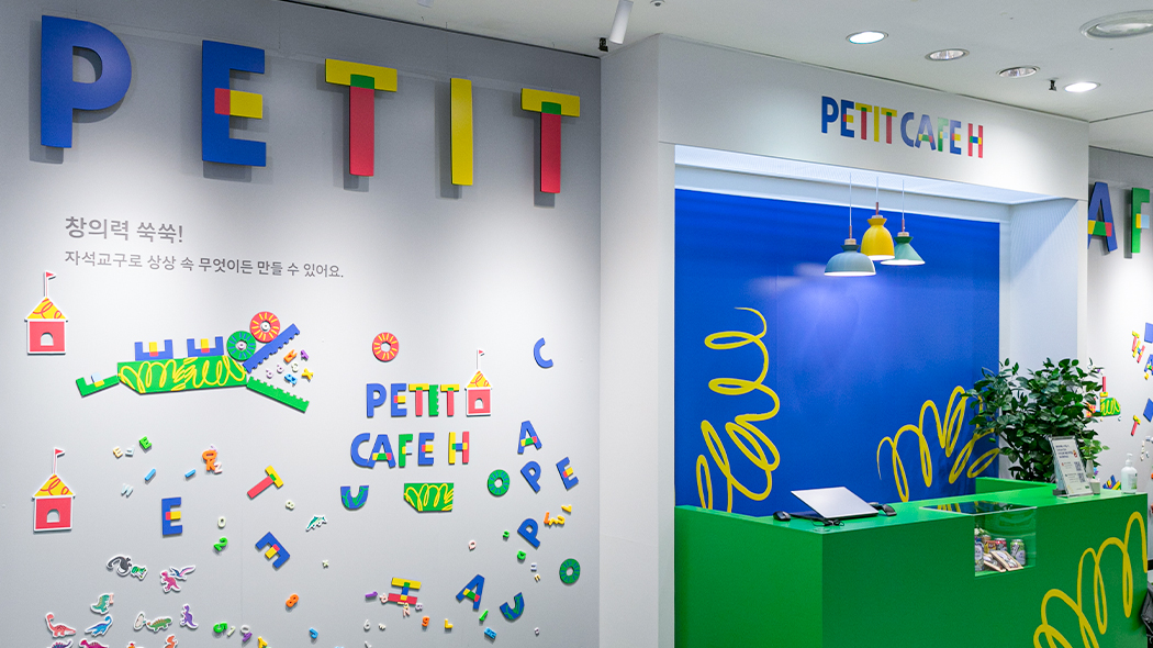 현대백화점은 방문 고객들을 위해 멤버십 카페 ‘카페 H’를 운영하고 있는데요. 미아점에서는 특별하게 키즈카페 형태의 카페 H를 만나보실 수 있습니다. ‘쁘띠카페 H’라는 귀여운 이름으로 기획된 이 공간은 사람들에게 주목받지 않고 있던 에스컬레이터 옆 벽면을 활용해 만들어져 현대백화점의 특별한 센스를 엿볼 수 있는데요. 쁘띠카페 H는 미아점에 방문하는 고객들의 편의를 위해 기획된 공간이라 그 의미가 더욱 특별해요.