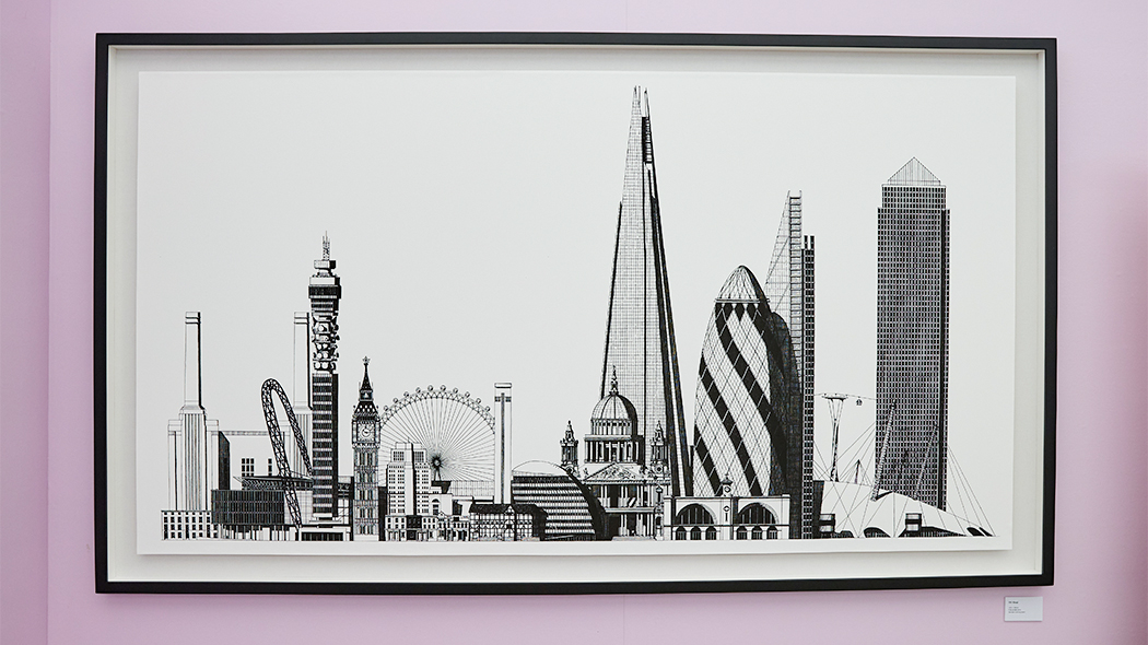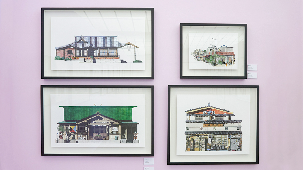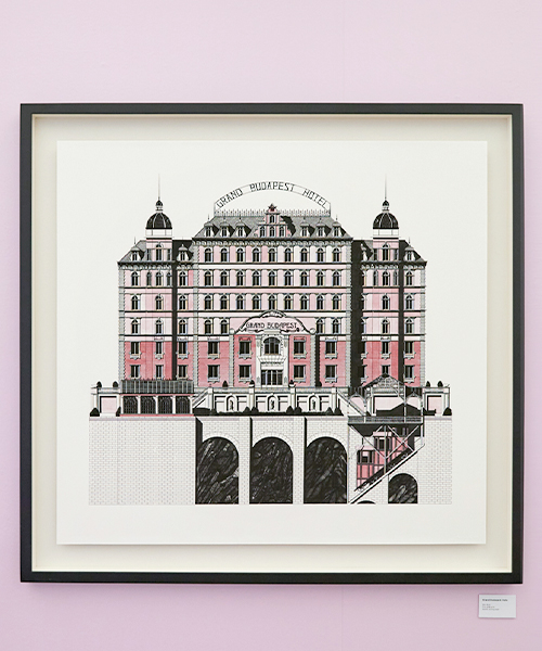 전시는 원화의 섬세함이 고스란히 담겨 있는 에디션 프린트로 꾸려졌는데요. 널리 알려진 그랜드 부다페스트 호텔 일러스트를 비롯해 런던의 리버티 백화점 등 랜드마크들을 작가의 스타일로 평면에 펼친 대규모의 일러스트는 관람객을 경이로운 순간으로 이끕니다. 미세한 펜 선으로 건축물의 가장 작은 디테일까지 표현해내죠.