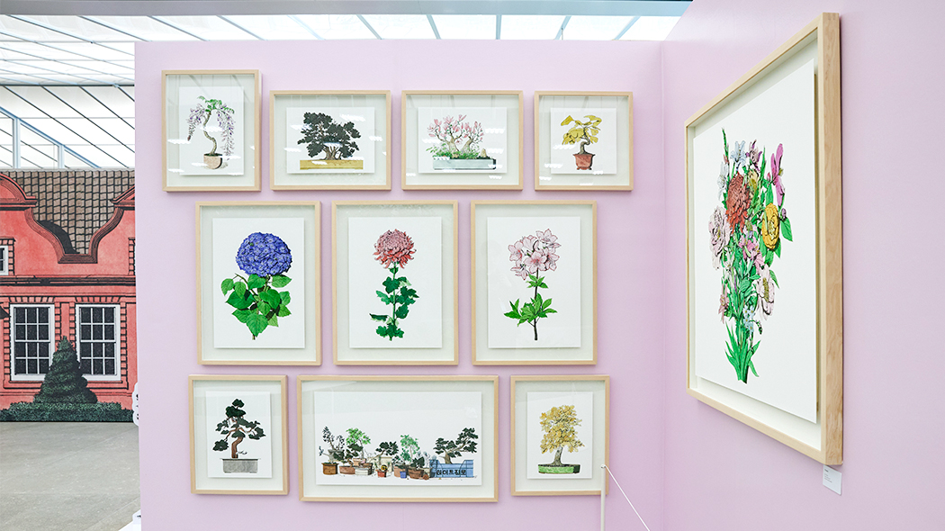 한국과 일본의 전통 가옥, 일상적 거리의 모습도 시선을 잡아당깁니다. 외국인의 눈으로 보고 그린 서툰 한국어 간판도 사랑스럽죠. ‘그림 정원’이란 전시의 주제가 된 식물과 꽃 일러스트도 빠질 수 없는데요. 작가에게 식물은 마음의 안정이 되는 소재라고 합니다. 자택 앞뜰에 직접 기르는 식물을 그리기도 하고요. 에디션 프린트 중 일부 50여 점은 전시 기간 동안 더현대닷컴에서 온라인으로 주문할 수 있으니, 티보 에렘의 작품을 나만의 공간에 전시해 보세요.