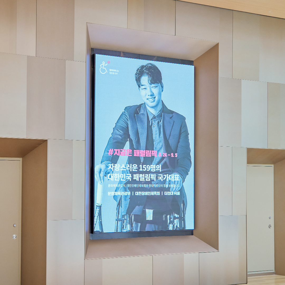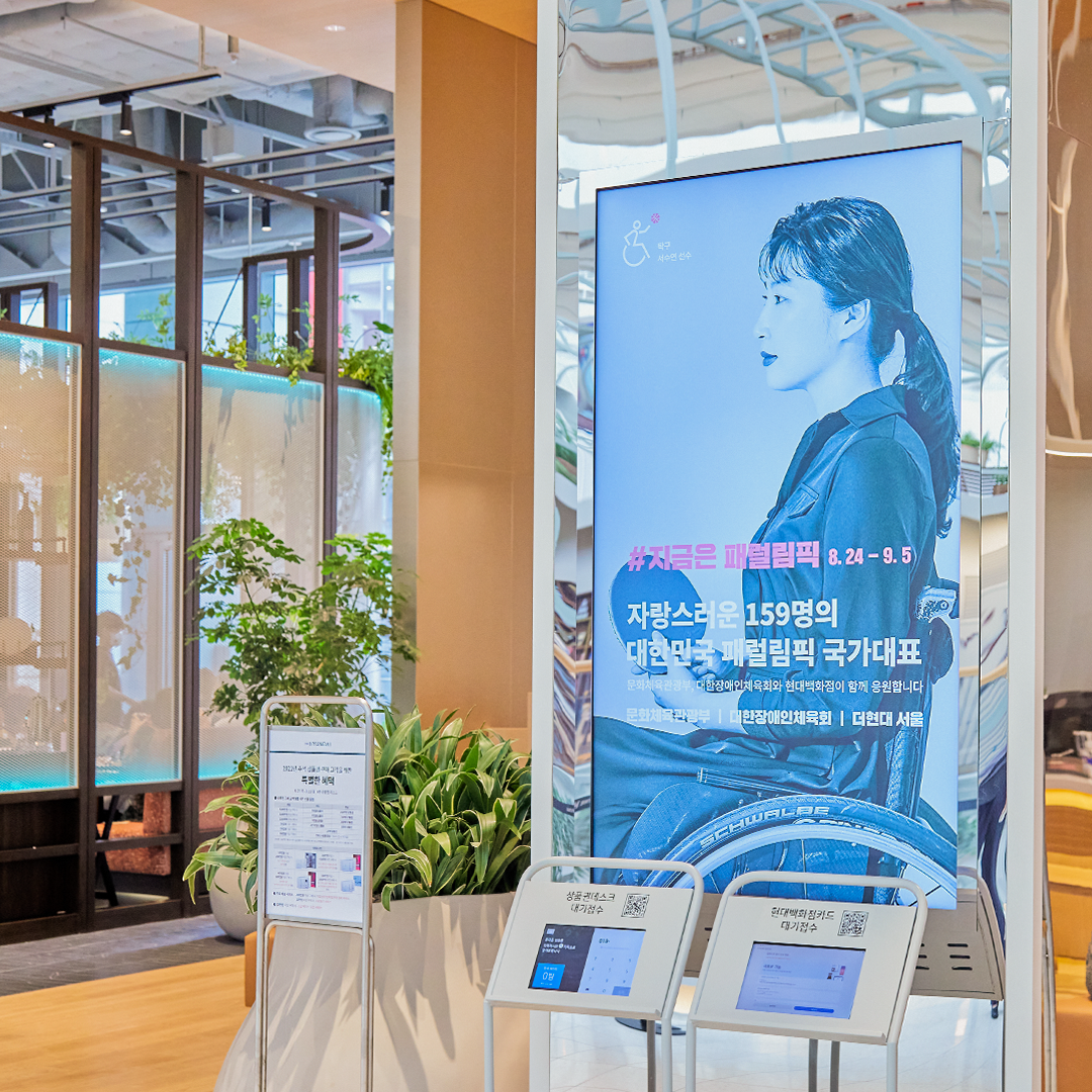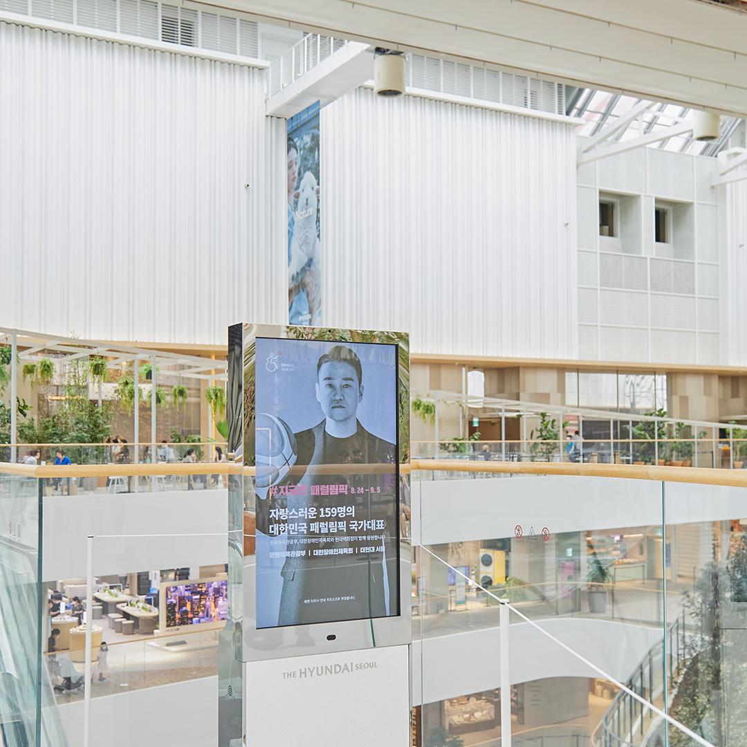 더현대 서울은 지금 ‘2020 도쿄 패럴림픽’의 열기와 선수 응원 메시지로 가득한데요. 더현대 서울에 들어서기 전부터 옥외 대형 전광판에서부터 패럴림픽 선수들을 응원하는 영상으로 우리를 맞이합니다.