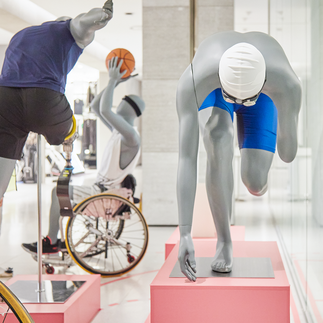 골프 브랜드 앞엔 휠체어테니스, 농구, 수영, 육상 선수들의 마네킹을 확인할 수 있습니다. 종목은 달라도 같은 스포츠 정신을 공유하는 스포츠 브랜드들이 함께 했습니다.