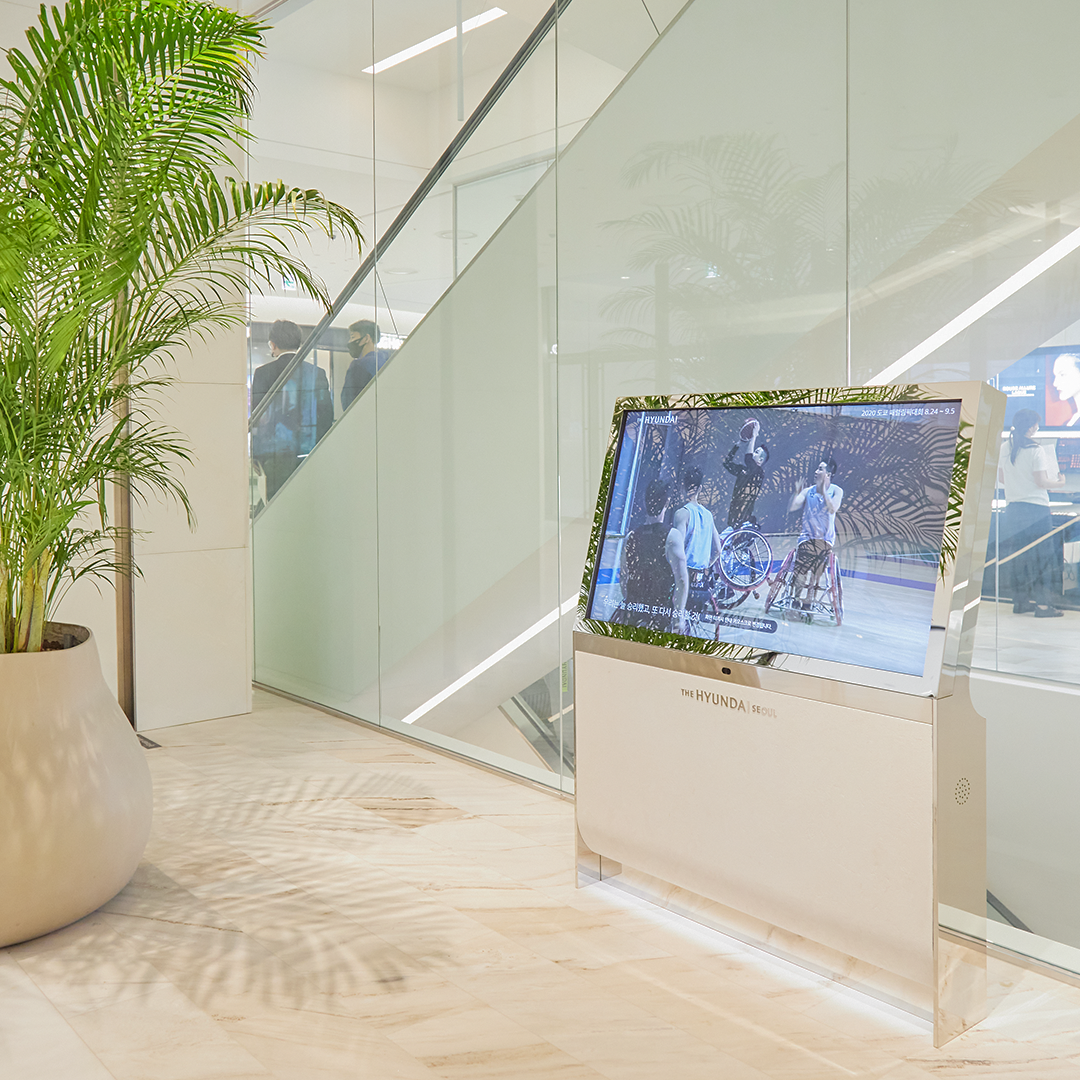 더현대 서울은 지금 ‘2020 도쿄 패럴림픽’의 열기와 선수 응원 메시지로 가득한데요. 더현대 서울에 들어서기 전부터 옥외 대형 전광판에서부터 패럴림픽 선수들을 응원하는 영상으로 우리를 맞이합니다.