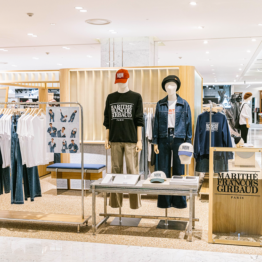 피어 바로 옆 자리하고 있는 마리떼 프랑소와 저버는 미국의 진에 프랑스만의 감각을 더한 진 등 캐주얼하면서도 세련된 스타일로 유명하죠. 미국이 진의 기능성에 집중했다면, 엔지니어드 진, 배기진, 스톤워싱 등으로 진을 패션으로 완성한 브랜드가 프랑스의 마리떼 프랑소와 저버입니다.