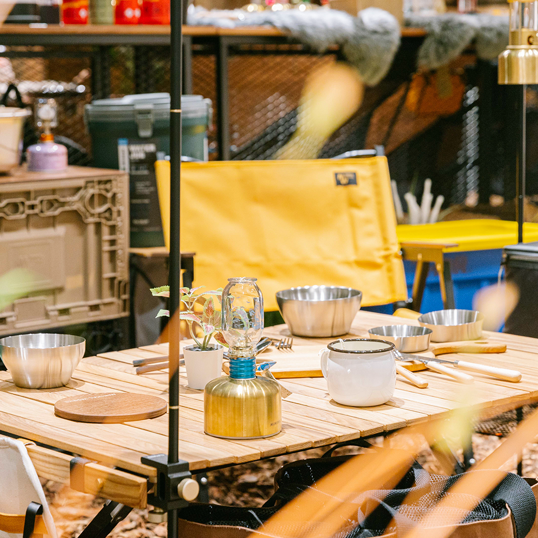 감성 캠핑에 꼭 빠질 수 없는 불멍을 예술의 경지로 끌어올려 버리는 에디슨 랜턴, 여행자의 캐리어와 같은 캠퍼들의 필수 아이템 알루미늄 박스, 그리고 시원한 맥주와 신선한 식재료를 담는 아이스박스도 텐트 앞 가장 잘 보이는데 두고 싶은 마음이 들게 할 정도로 세련되었죠. 여기에 캠퍼들을 위한 의류까지 챙긴다면 그대로 감성 캠핑 완성! 당장 떠나고 싶은 마음에 가슴이 설레네요.