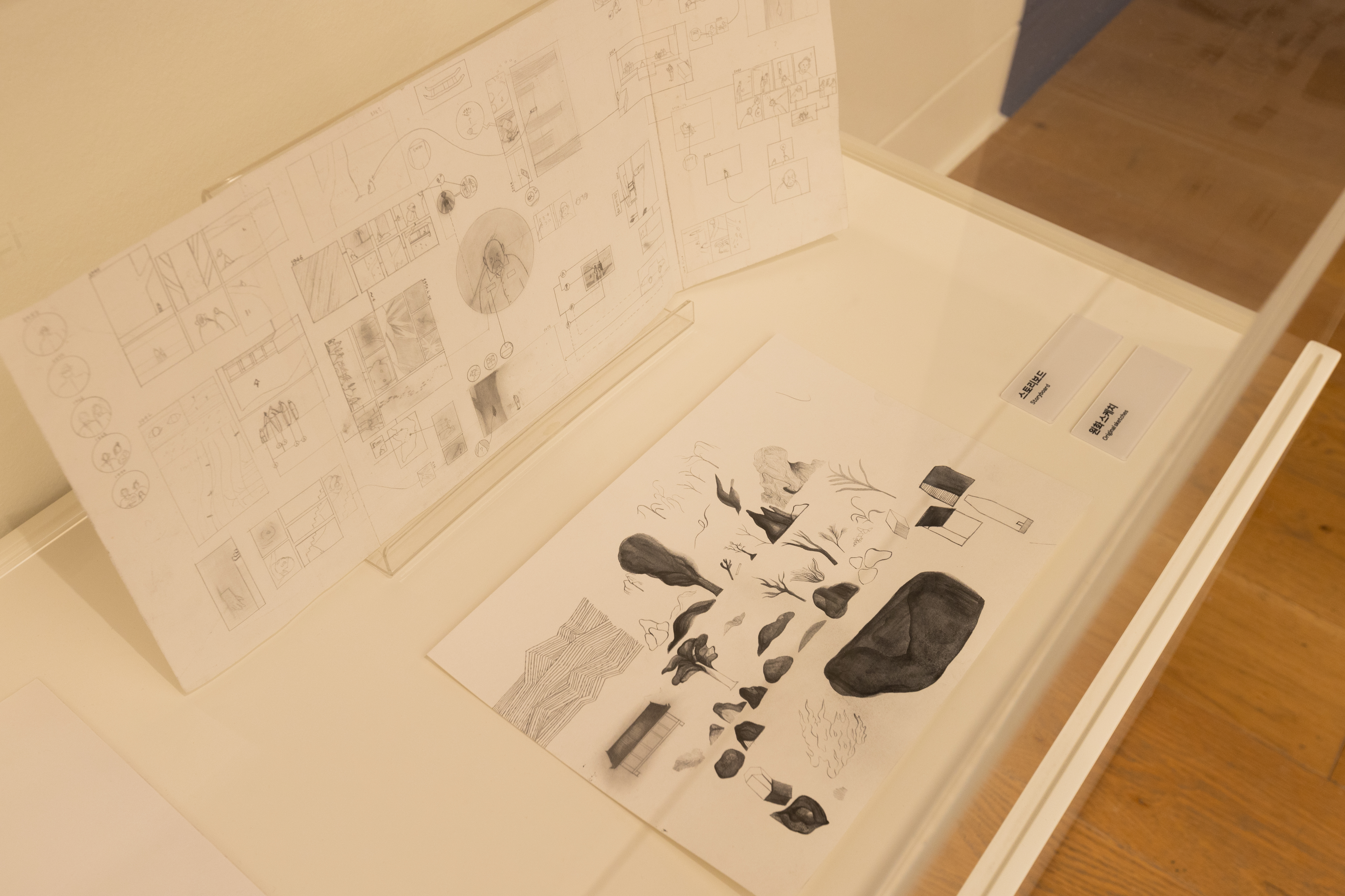 1. 더미북을 볼 때는 스토리 관점에서 그림을 이해하고, 원화를 볼 때는 예술 작품으로서 그림을 느껴보세요.