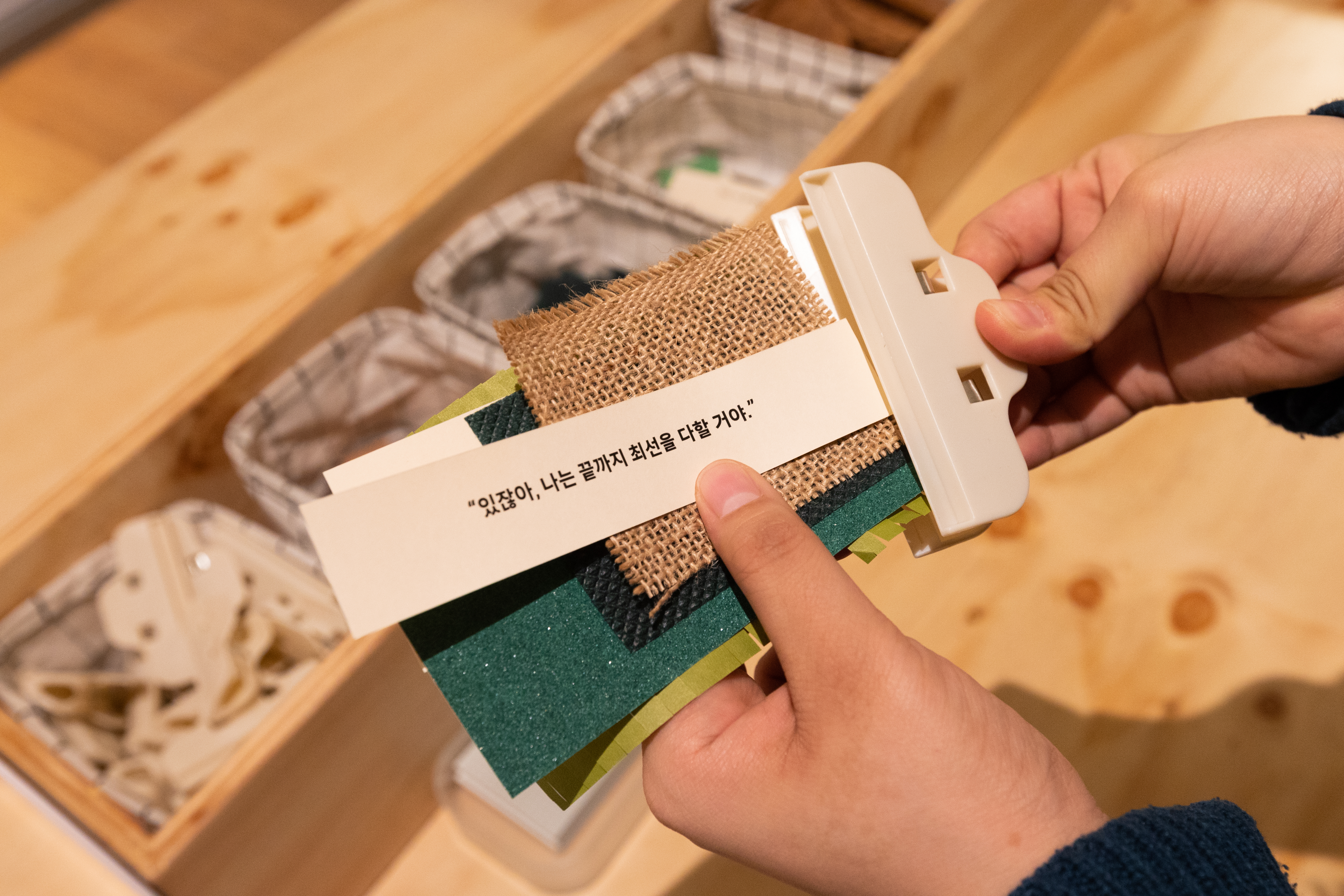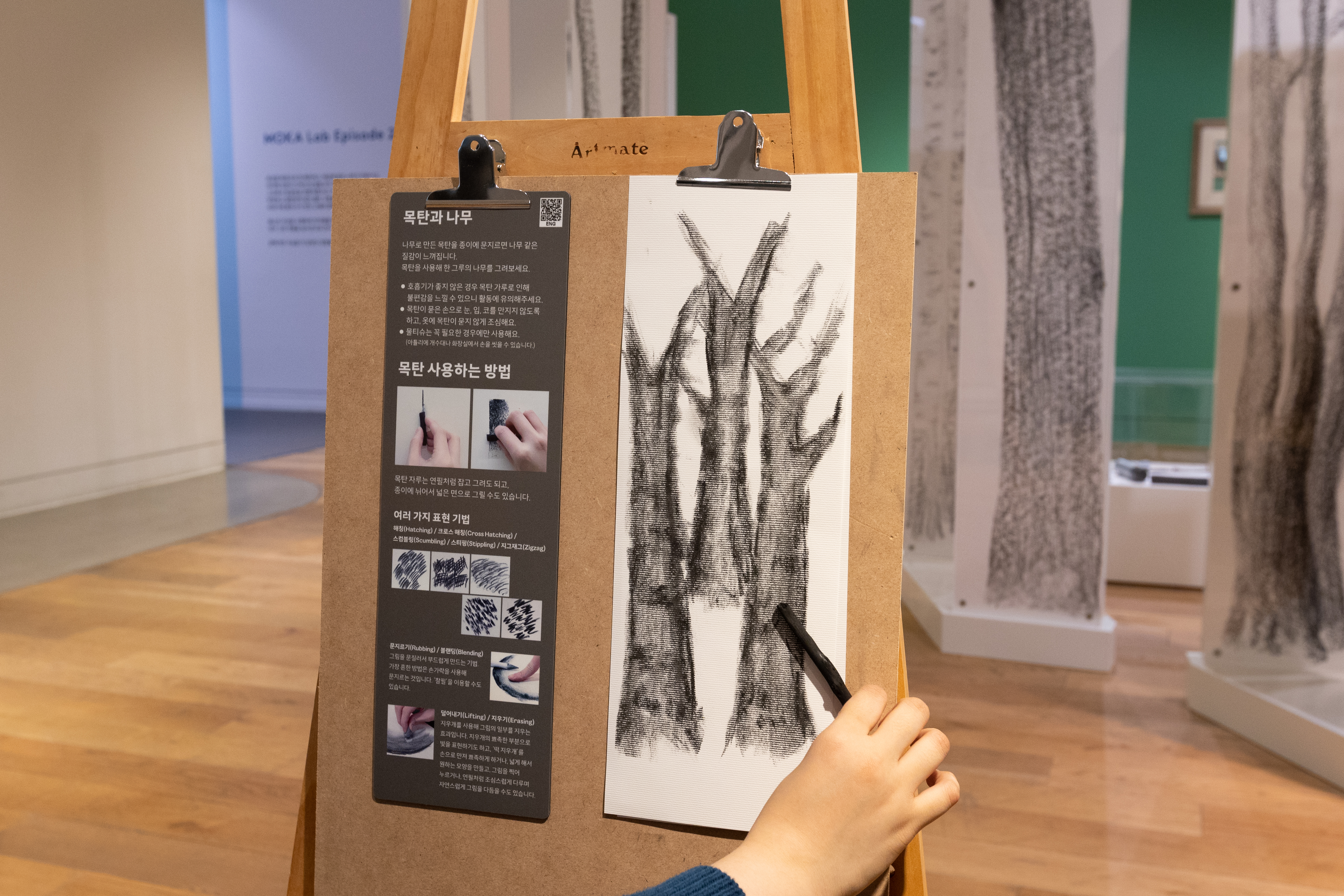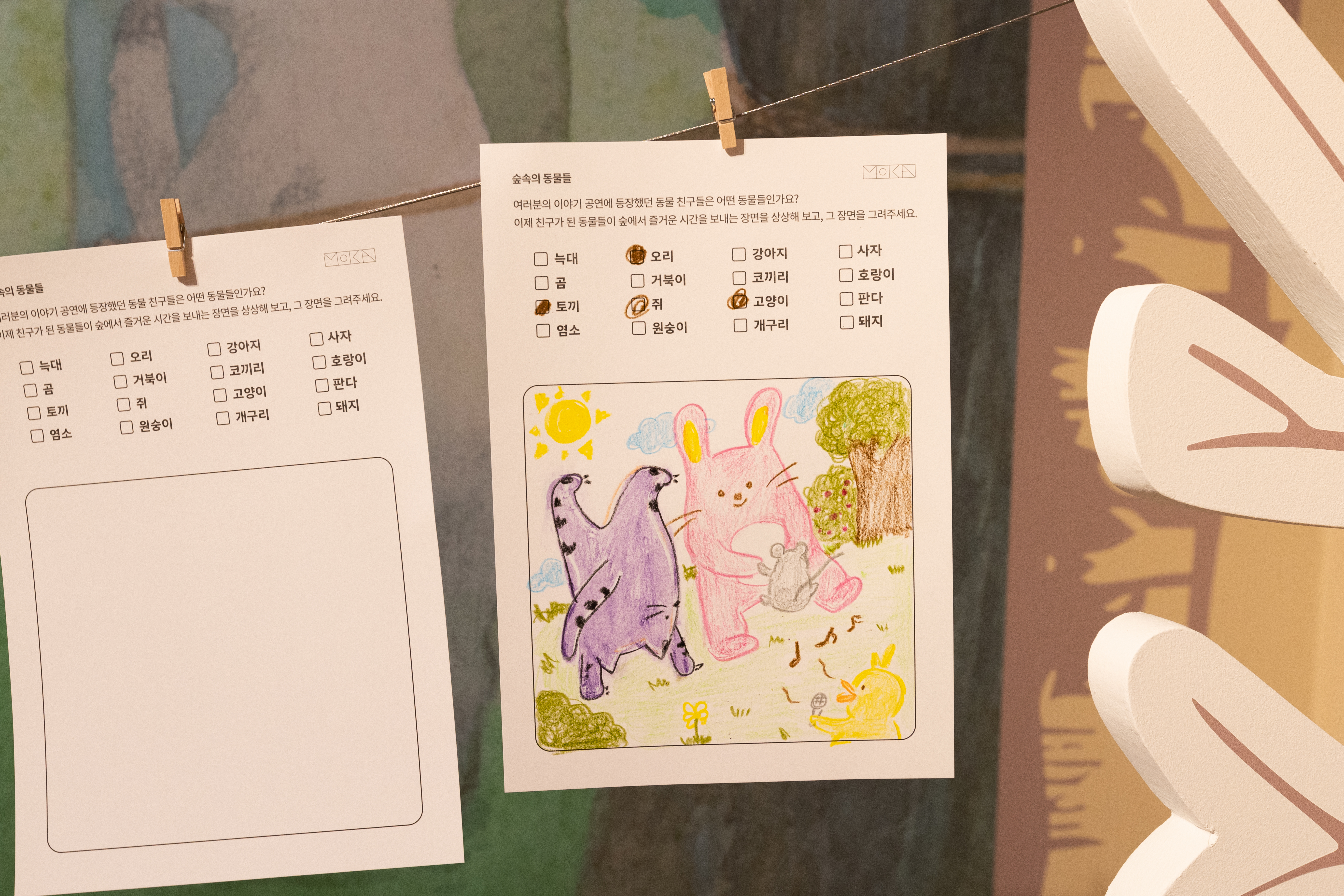 우선, 5층에서는 작품 속에 충분히 녹아들어 관람객들이 직접 작품의 화자가 되어보는 경험을 해볼 수 있습니다. 콩스탕 조이 <목탄>의 소재가 된 목탄을 사용해 한 그루의 나무를 그려보고, 재희 <조우_내가 보이나요?> 작품에 영감을 얻어 나무 종이의 질감을 손으로 느끼며 틈새에서 솟아오르는 식물을 직접 만들어볼 수도 있습니다. 또 최정혜 <궁금해 궁금해> 작품에 빠져들어 ‘친구’를 형상화해보는 활동을 해볼 수도 있어요.