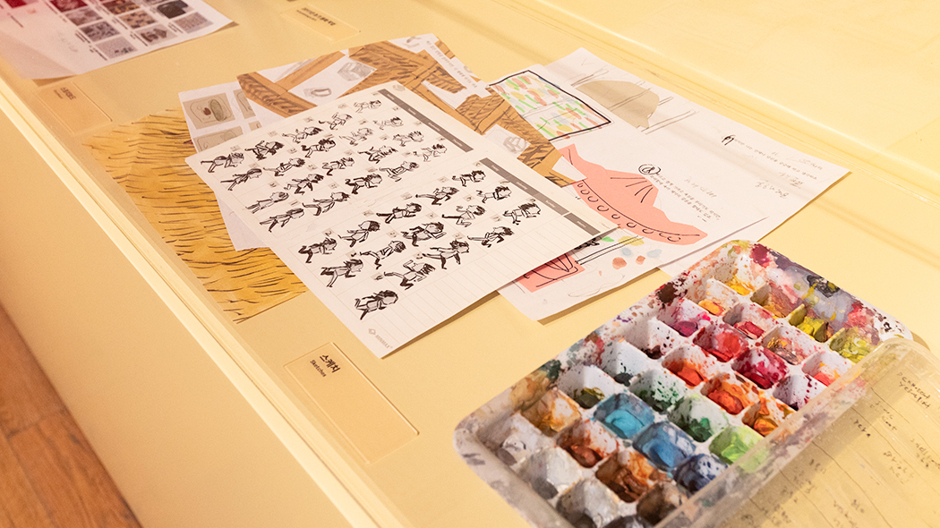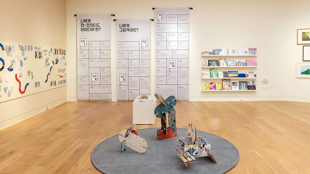 <언-프린티드 아이디어>는 2017년부터 이어져 온 현대백화점의 신진 작가 지원 프로젝트입니다. 제목 그대로 ‘아직 출판되지 않은’ 그림책을 다루는 전시로, 원화부터 작업 과정 스케치, 더미북(가제본)까지 어디서도 공개된 적 없던 작업물들을 만나볼 수 있죠. 어느덧 4회째인 이번 전시에서는 공모를 거쳐 선정된 일곱 작가의 작품이 총 3가지 테마로 공개되었어요.