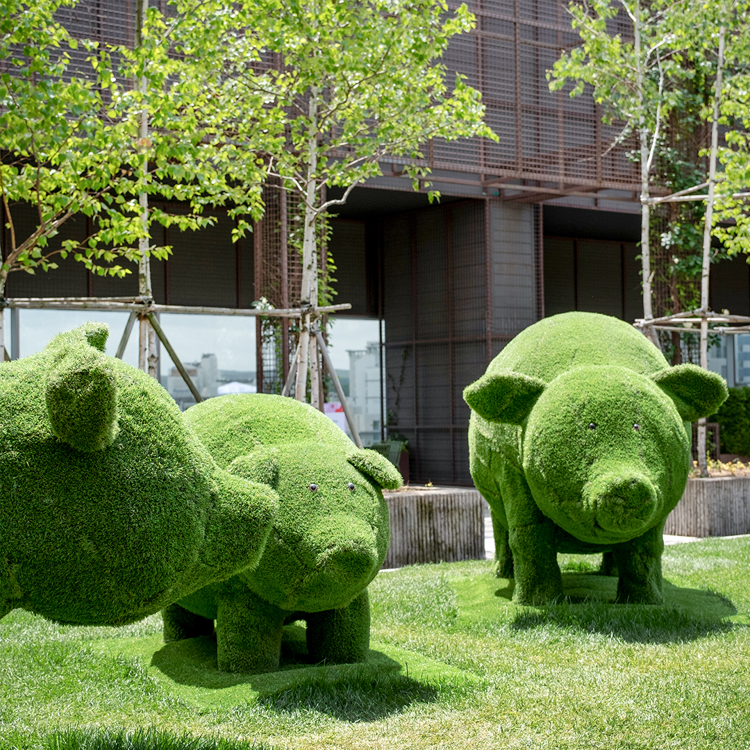 ‘힐링파크’에서 차오른 자연의 감성은 같은 층 하늘정원으로 이어지는데요. 유럽의 정원을 닮은 하늘정원에 올해도 토피어리가 돌아왔습니다. 지난해 곰과 코끼리에 이어 올해에는 사슴과 돼지가 하늘정원에 내려왔는데요. 사슴 가족과 돼지 가족의 하늘정원 나들이가 평화로워 보이네요.