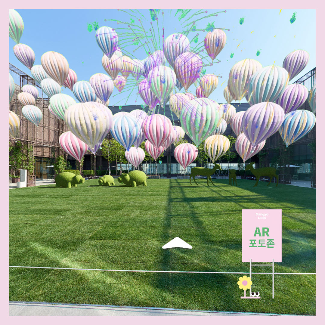 온라인 ‘VR 판교랜드'로도 잘 따라오고 계시죠? 그렇다면 입구 정면에 놓인 ‘AR 포토존’도 보셨나요? ‘AR 포토존’은 온라인 ‘VR 판교랜드’와 오프라인 판교랜드를 잇는 다리와 같은데요. ‘VR 판교랜드'에서 발견한 ‘AR 포토존’을 클릭하거나 판교점 공식 인스타그램에서 ‘AR 필터’ 기능으로 현장에서 ‘AR 포토존’ 안내 표지판을 찰칵 촬영하면, 마법같은 가상현실이 펼쳐집니다.
