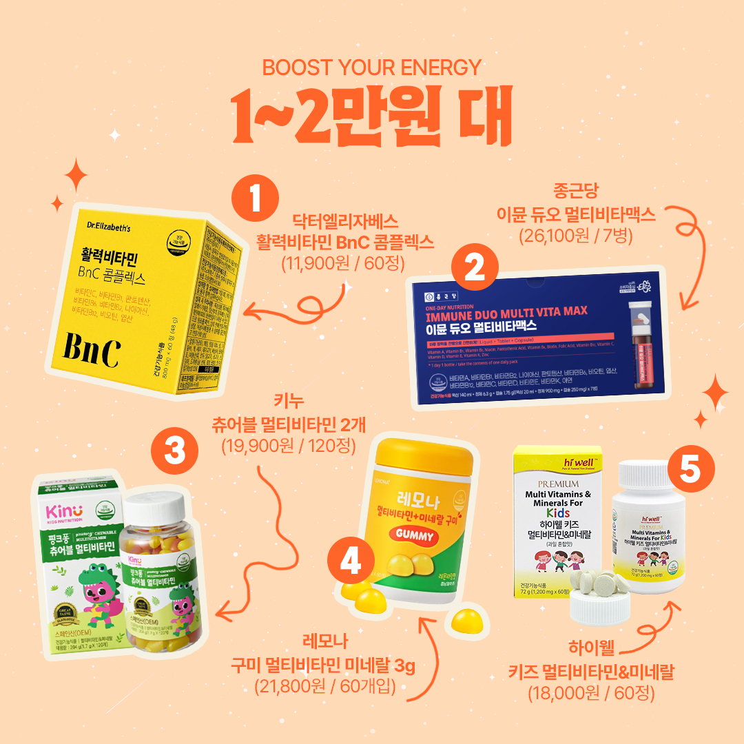 물 없이 간편하게 하루 딱 1병으로 활력 있는 일상을 위한 올인원 비타민 & 미네랄 이뮨 듀오 멀티비타맥스입니다. 이미 많이 알려진 비타민 제품으로, 잦은 야근과 과도한 업무에 지친 직장인부터 매일 학교와 학원을 오가며 활력이 필요한 학생들에게 추천하는 만능 아이템입니다.