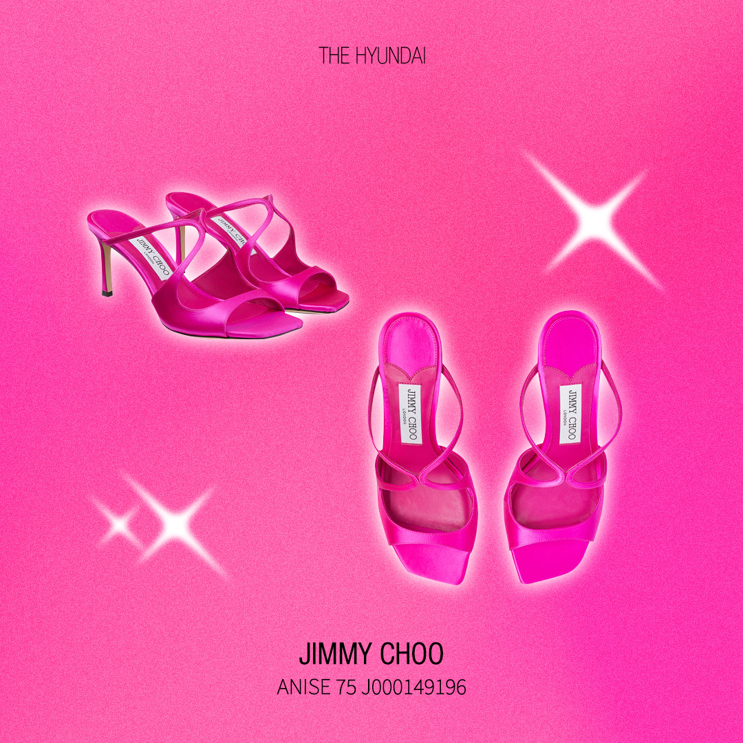 발 끝에서도 트렌디한 바비 코어를 표현할 수 있습니다. 지미추의 아니스 뮬은 새틴 소재로 되어 있어 우아하면서 세련된 이미지가 강렬합니다. 날렵한 스트랩과 스퀘어 토의 매력적인 조화에 자연스레 시선을 빼앗기게 되는데요. 슬립온 스타일로 착용할 수 있으며 너무 낮지도 높지도 않은 7.5cm의 힐 높이는 아름다운 다리 라인을 만들어줍니다.