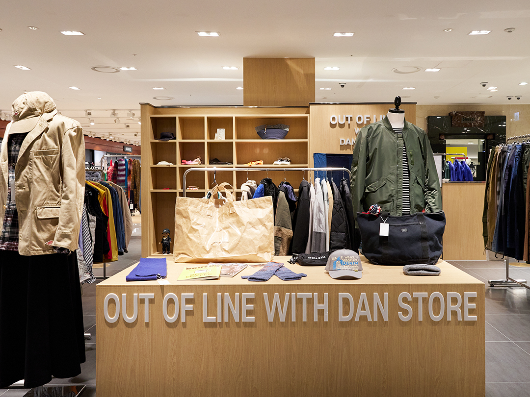 캉골 매장 옆에 위치한 아웃오브라인은 부산 서면의 세컨핸드 숍 아웃오브라인이 서울 연남동의 단스토어와 함께 기획한 ‘세컨핸드 전문 숍’이에요.